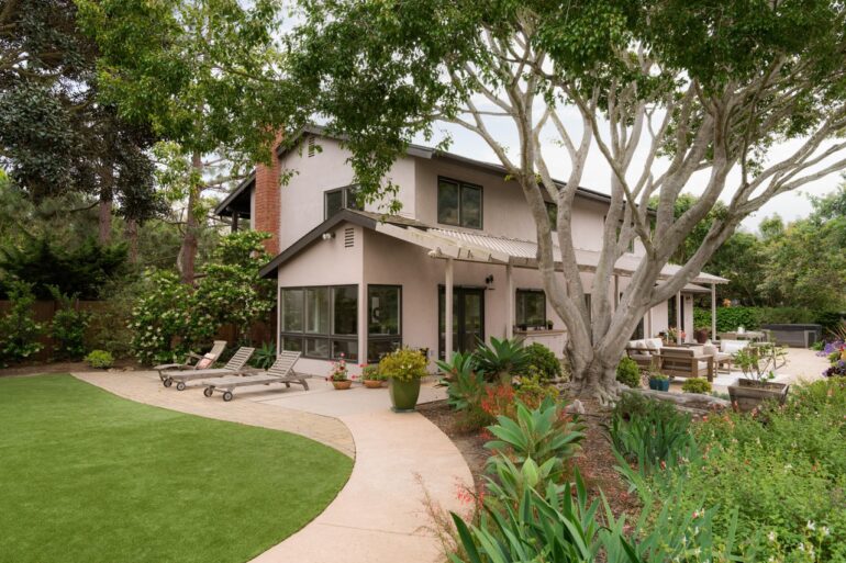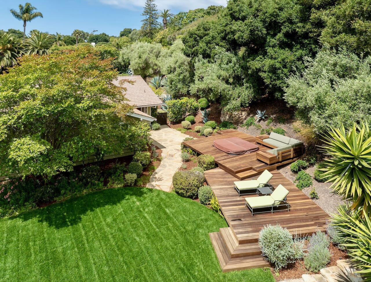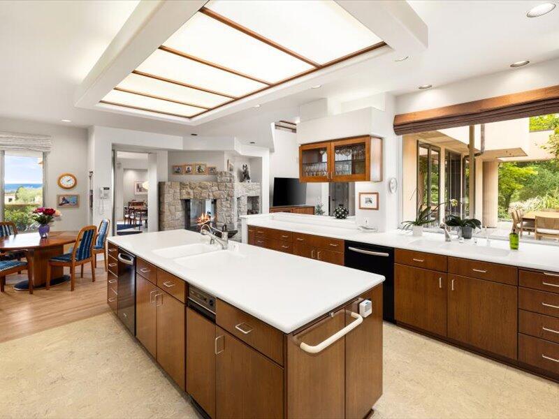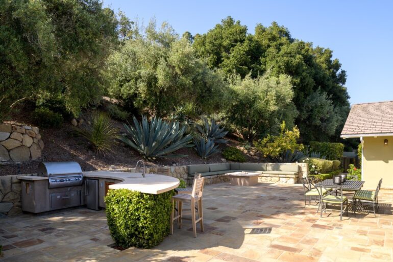 There’s a sweetness to the 1961 house at 1263 Las Palmas Drive ($5.345 million), although the kitchen and baths need a redo. The lot is 2.32 acres, much of which is buffer from Hope Ranch’s main drag, and the backyard is wedged between the house and a hill.