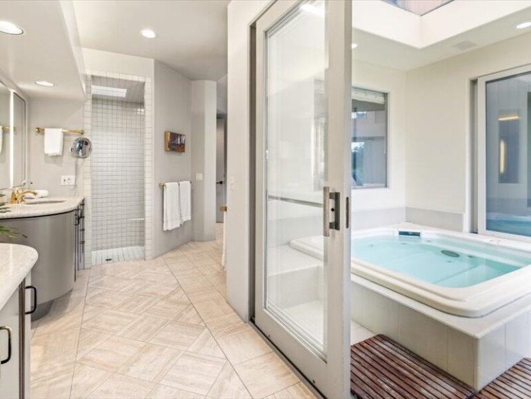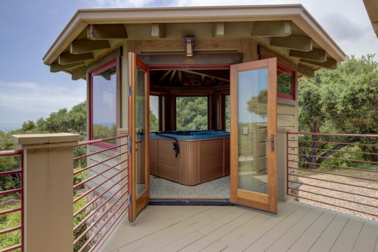 Two indoor hot tubs in the same week! And the one at 1947 Paquita Drive ($4.975 million) in Carpinteria is in its own gazebo. Interiors are a mix of rustic and not, and the view is everything, because there’s no outdoor space besides the decking.