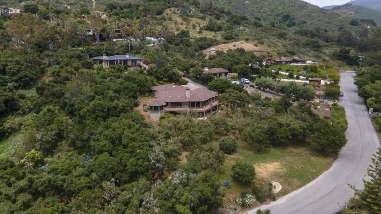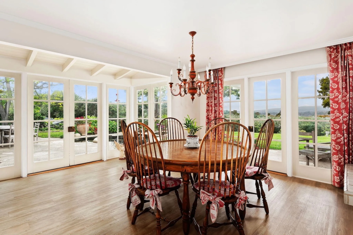 ••• 3930 Indian Way ($8.965 million): 1975 house with 1990s interiors and abundant millwork; the 12-acre lot fronts the Santa Ynez River and includes a guest house and equestrian facilities.