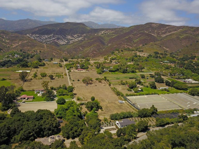 7170 Gobernador Canyon ($2.495 million) is 4.37 acres above Carpinteria with a nondescript 1980s farmhouse and “approved plans thoughtfully designed by the owners with Two Trees (architect) and Eric Nagelmann (landscape designer). A Coastal Development Permit has also been issued and the property is ready to be developed with a new, single level modern farmhouse, barn, pool and fruit and vegetable gardens.”
