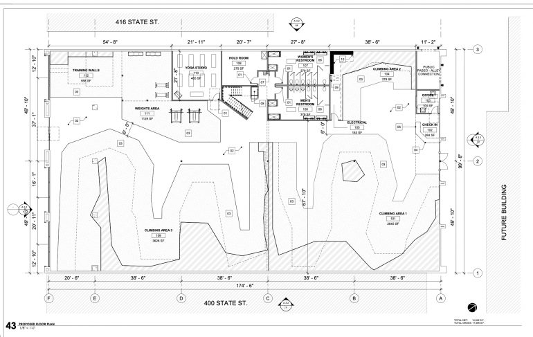 ••• According to the agenda for Thursday’s meeting of the Historic Landmarks Commission, the plan for a big apartment complex at 410 State Street (at Gutierrez) has been updated to include an outpost of The Pad, a 24-hour climbing gym with locations in San Luis Obispo (pictured above) and Henderson, Nevada.