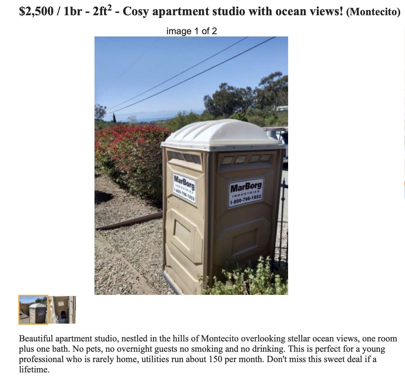 ••• M. spotted an amusing Montecito rental opportunity posted on Craigslist. Well, it’s amusing to those of us who aren’t looking for a rental.