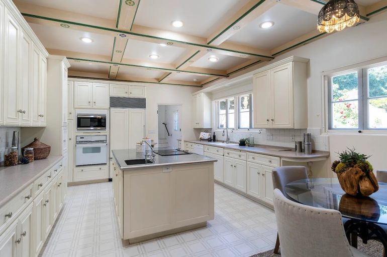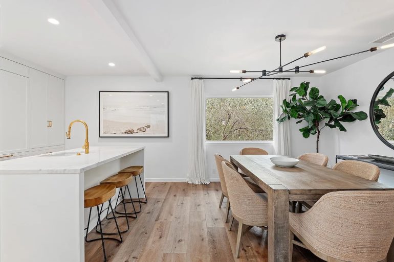 There’s a lot of history in the bones of 1107 N. Nopal Street ($2.389 million), built in 1926 in the row of houses known as Little Granada*. But like so many Santa Barbara properties, it could use updating—particularly the kitchen, which looks like an AI glitch. (*The text below is from the Historic Landmarks Commission’s Structure of Merit designation report for 1103-1131 N. Nopal Street, 725 E. Figueroa Street, and 734 E. Anapamu Street.)
