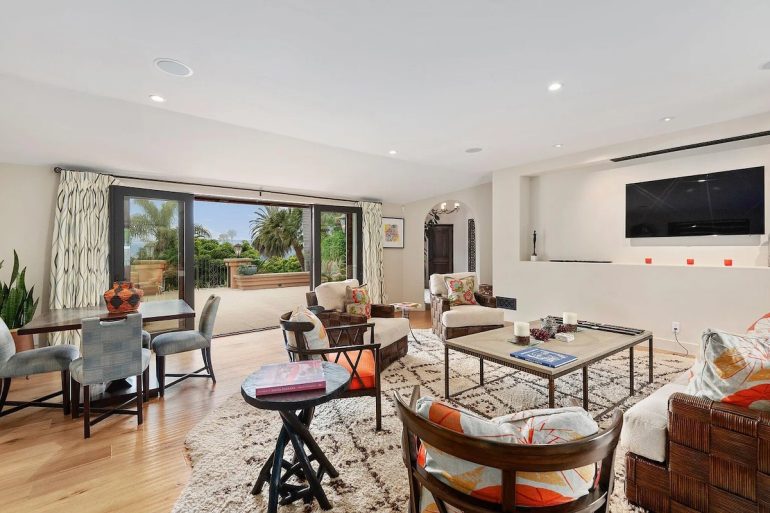 Hot potato! 231 Butterfly Lane ($5.95 million) sold for $2.25 million in 2018, $3.72 million in 2020, and $4.8 million this past January. At some point it got a renovation, and the surfaces look fine in a model-home way. The floor plan, however, could still use untangling. You enter above street level into the kitchen/dining room, which is not huge and doesn’t have a lot of windows, and then you have to go up more stairs to get to the living room or down to reach the family room. (The seller apparently looked into lowering the entry and expanding the kitchen/dining area, which would make a massive difference.) The backyard is a solid A, especially if you’re partial to gravel, and of course the walkability to Coast Village Road is a boon.