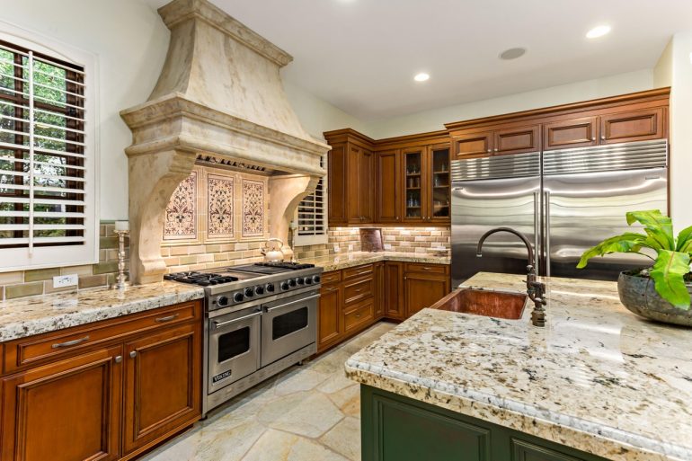 A three-bedroom Mediterranean with a guest house, 7796 Goldfield Court ($3.2 million) was built as the model home for the Bluffs gated community located between Sandpiper Golf Club and Santa Barbara Shoes Park. It’s going to seem like a better deal if you’re into the many Tuscan-suburb surfaces.
