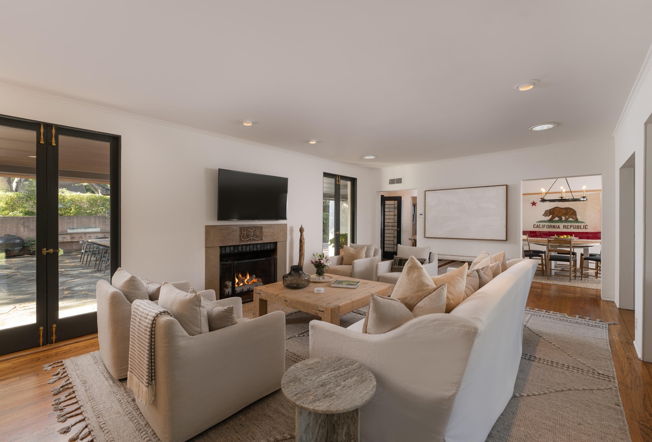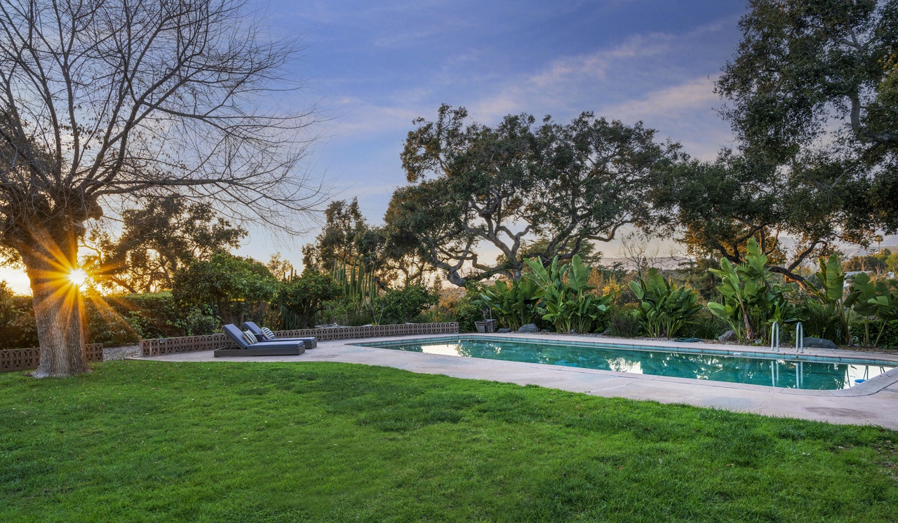 Down a long private lane in prime Montecito, 1946 East Valley Road ($11.95 million) has an appealing brawniness: 7,900 square feet, with five bedrooms, eight full baths (including two primary ones), and two half baths. (Even the motor court is big.) While then rooms are nicely proportioned, some of the finishes feel suburban, and the covered terraces, as they tend to do, impact how much light gets inside. There’s an opportunity to activate much more of the backyard.