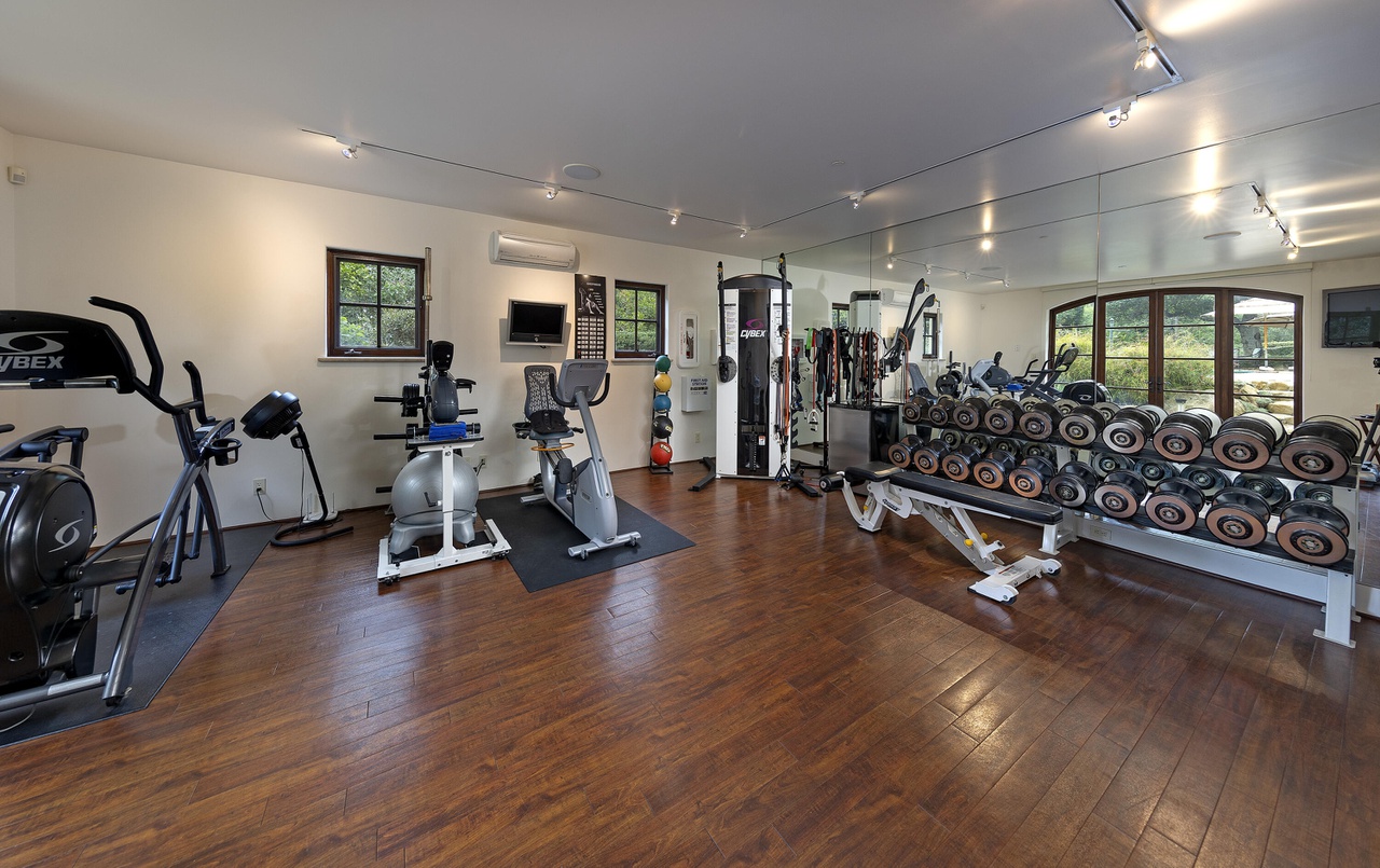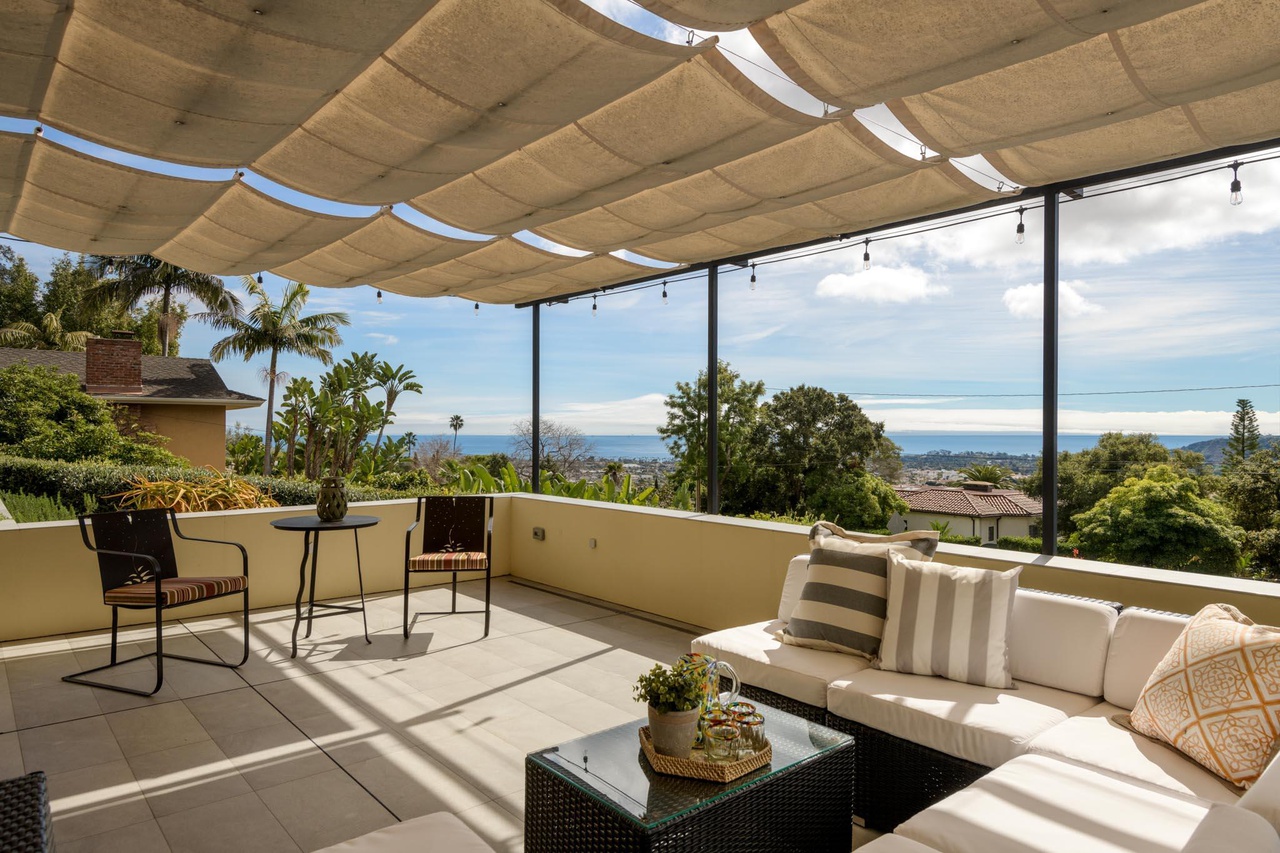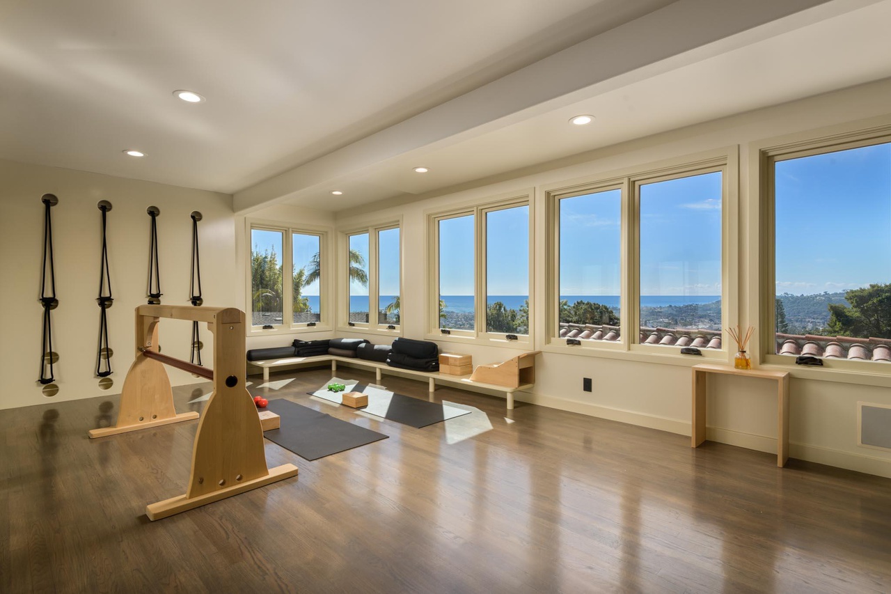 There are a lot of stairs at 900 Moreno Road ($4.595 million), a 4,212-square-foot house at the corner of Alameda Padre Serra, but they lead to interesting places: a home theater, a gym with major views, and above that, a primary bedroom with even more major views. A cohesive interior design would help.