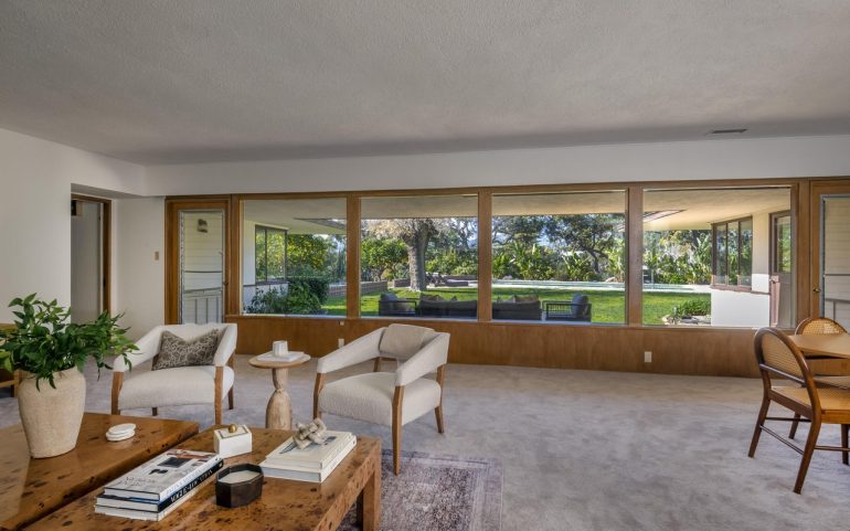 Bet on it: despite being a fixer through and through, 201 Canon Drive ($3.25 million) will go for over the asking price. The 1948 ranch-style house is on .68 acre on a great San Roque street—with a path down to the lower part of the Canon Drive loop—and it comes off better in real life. That wall of windows in the living room looks out onto the large backyard, which would benefit from some hardscaping.