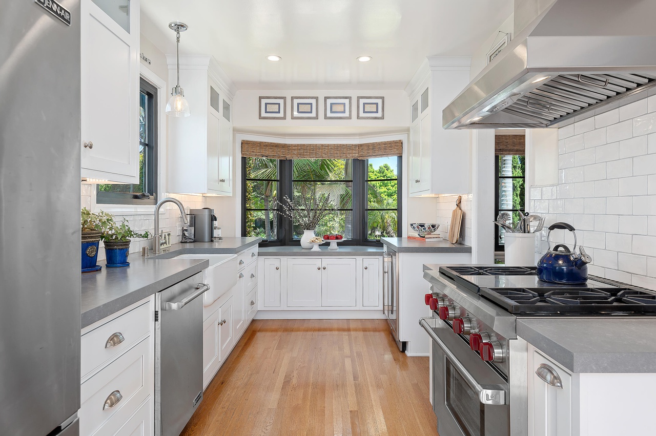 1530 Miramar Lane ($6.75 million) is a spec reno, having sold for $4.328 million last May. The 1938 house has the historic charm you want in the Hedgerow, but I wish the seller had put more into it—one of the bathrooms wasn’t really redone, the laundry machines are exposed (you might expect some cabinetry for well north of $6 million), and little flaws got painted white rather than fixed. The outbuilding includes an art studio, a guest apartment, and a storage room that could/should be incorporated into either of the other spaces.