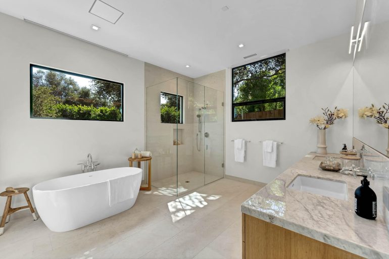 Designed by George Washington Smith and built in 1929, Los Sueños, a.k.a. 2925 Sycamore Canyon Road ($33 million), is quintessential Montecito—the architecture, the 3.36 acres of grounds, and the central location. The interiors are ready for a new chapter—although I do hope the mosaic floor in the primary bathroom can be spared—and the outdoor space is perfect for a party or two. (That square swimming pool is pure glamour.) And then there’s the tower. At the brokers’ open, I got a chance to explore it; the four floors are home to—starting from the bottom—a tiny living area, kitchenette, bathroom, and bedroom, all connected by a spiral staircase. It’s not what I would call livable, but what a fabulous folly!