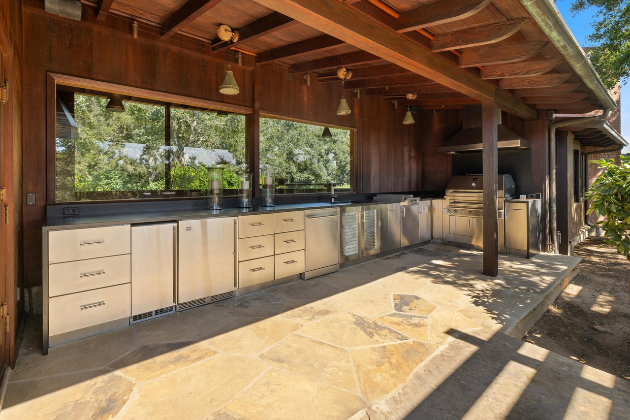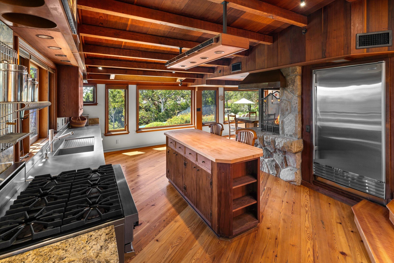 On 3.32 acres at the end of a Montecito cul-de-sac, 930 Knollwood Drive ($12.85 million) has an appealing sprawl, woodsy midcentury charm, and a comfortable guest house. It was designed by Lockwood de Forest, built in 1949, and subsequently added onto; the right architect and interior designer could update it without sacrificing what makes it special. Plus: a serious outdoor kitchen and a fire pit big enough for an entire troop of Cub Scouts.