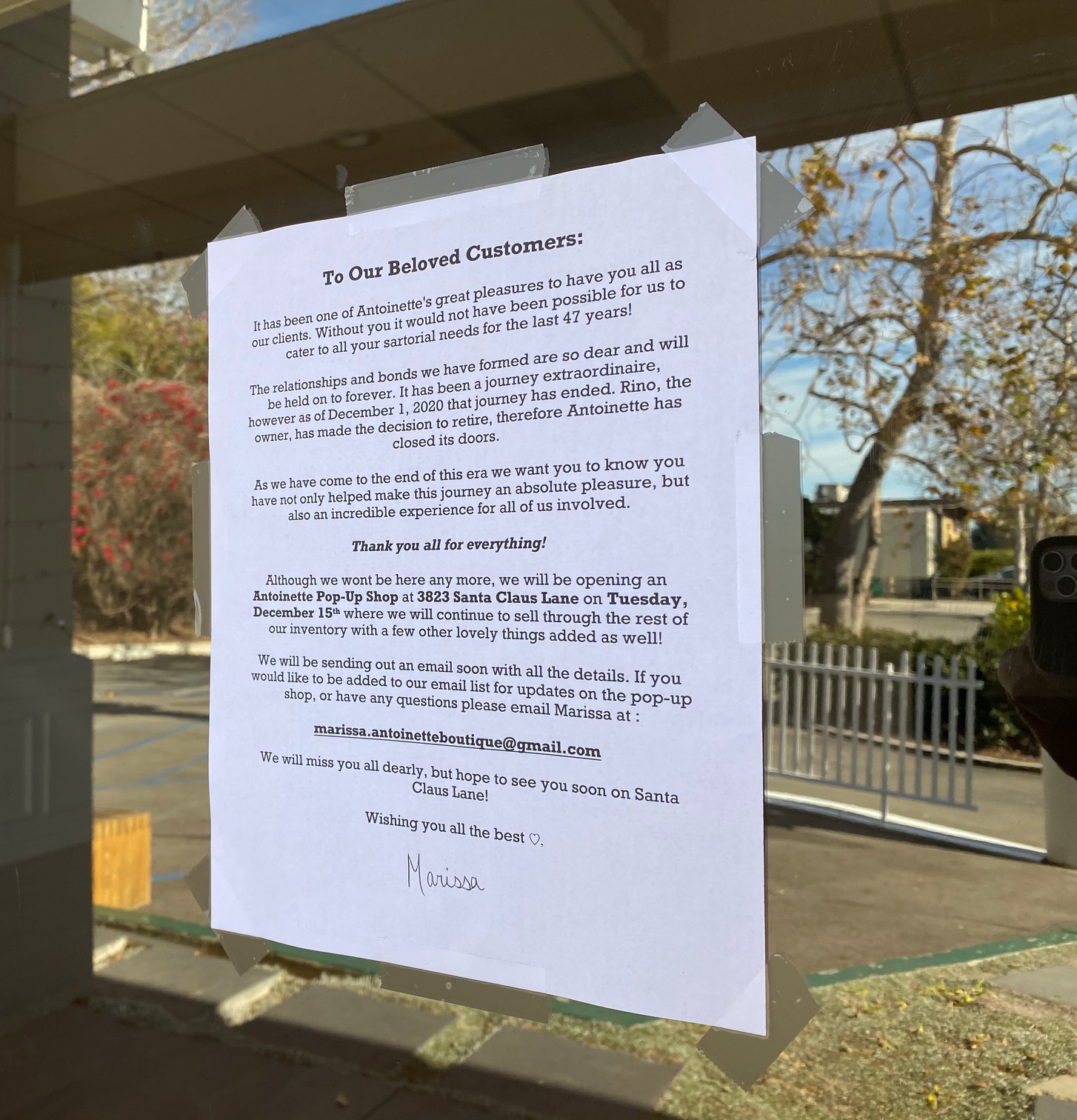 ••• I hadn’t realized that the Antoinette boutique on Coast Village Road has closed for good. The store was in business for an impressive 47 years.