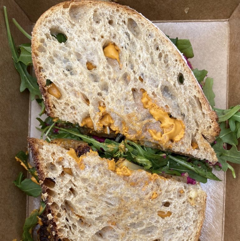 ••• Kudos to Field & Fort for its excellent vegan sandwich—not an easy thing to accomplish—with roasted kohlrabi, zaatar, beet hummus, romesco, and arugula. You might want an extra napkin, though.