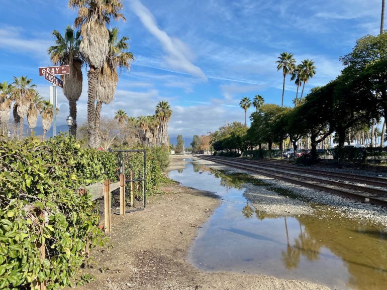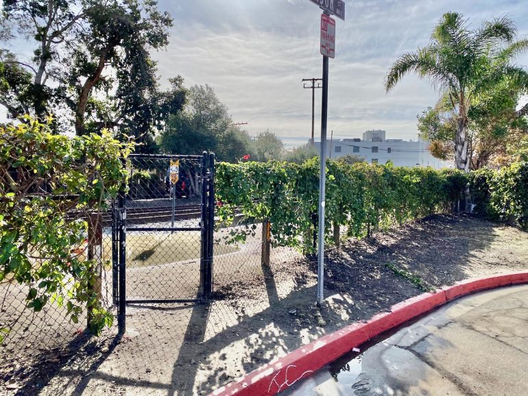 ••• After parking in the spaces at the south end of Santa Barbara Street in the Funk Zone, I watched a woman pass through a gate in the fence by the railroad tracks. Having never noticed the gate before, I followed her, and so I learned that it’s an easy way to get over to Anacapa Street (and the southwestern part of the Funk Zone). Back home, I excitedly told my husband, who replied, “Everyone knows about that gate.” But I’m throwing it out there in case I was not alone.