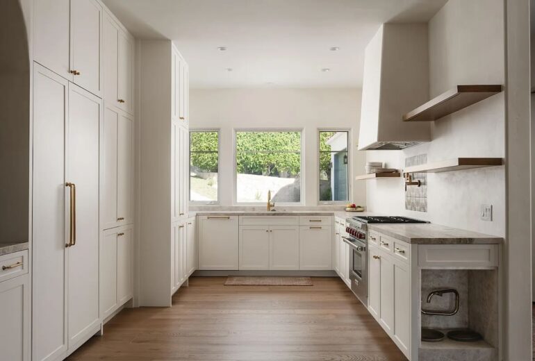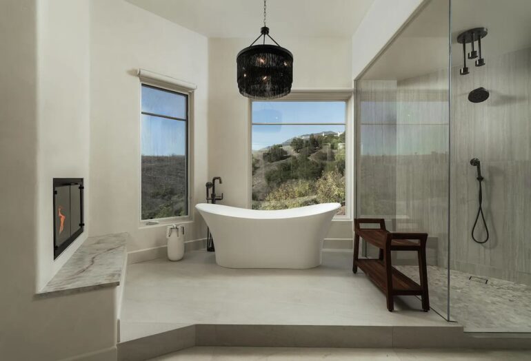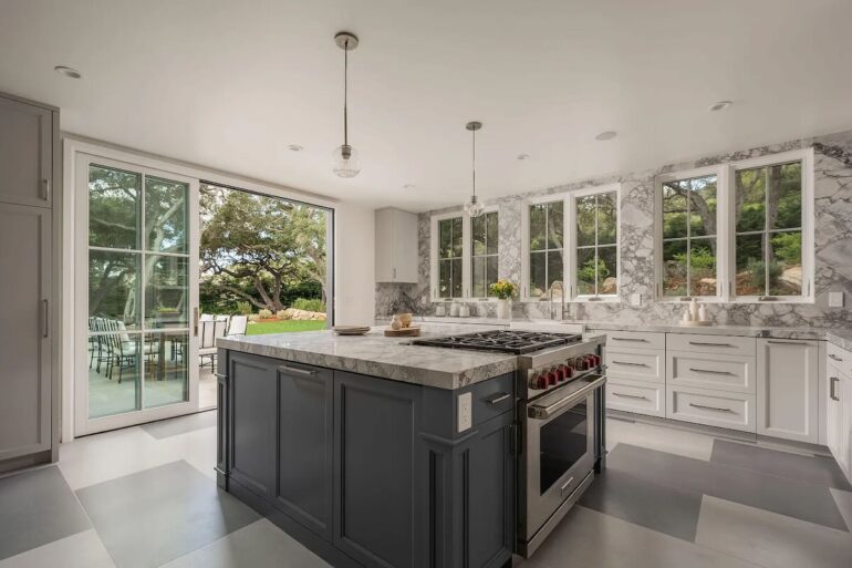 And size is no concern at all at 1475 E. Mountain Drive ($28.5 million), which feels even larger than its 11,740 square feet—and it certainly looks larger, now that the front and rear facades have been stripped of vegetation and painted white, gleaming like a fresh set of veneers. (A few before photos are here.) Inside, the seller—who paid $19.6 million in the fall of 2021—kept things spare, and it’s all super-duper livable, with a tremendous view of Montecito, the ocean, and the islands. The best part, in my opinion, is the spread of flat land to the south. Looking out over the pool and tennis court, you truly feel as if you’ve won the lottery.