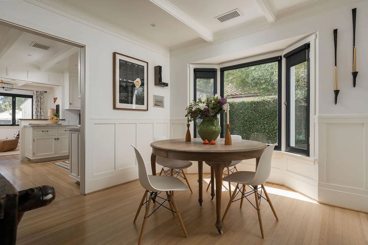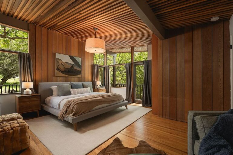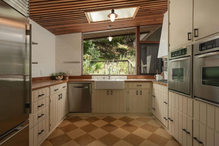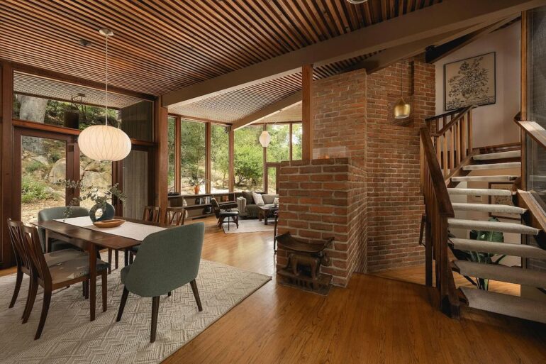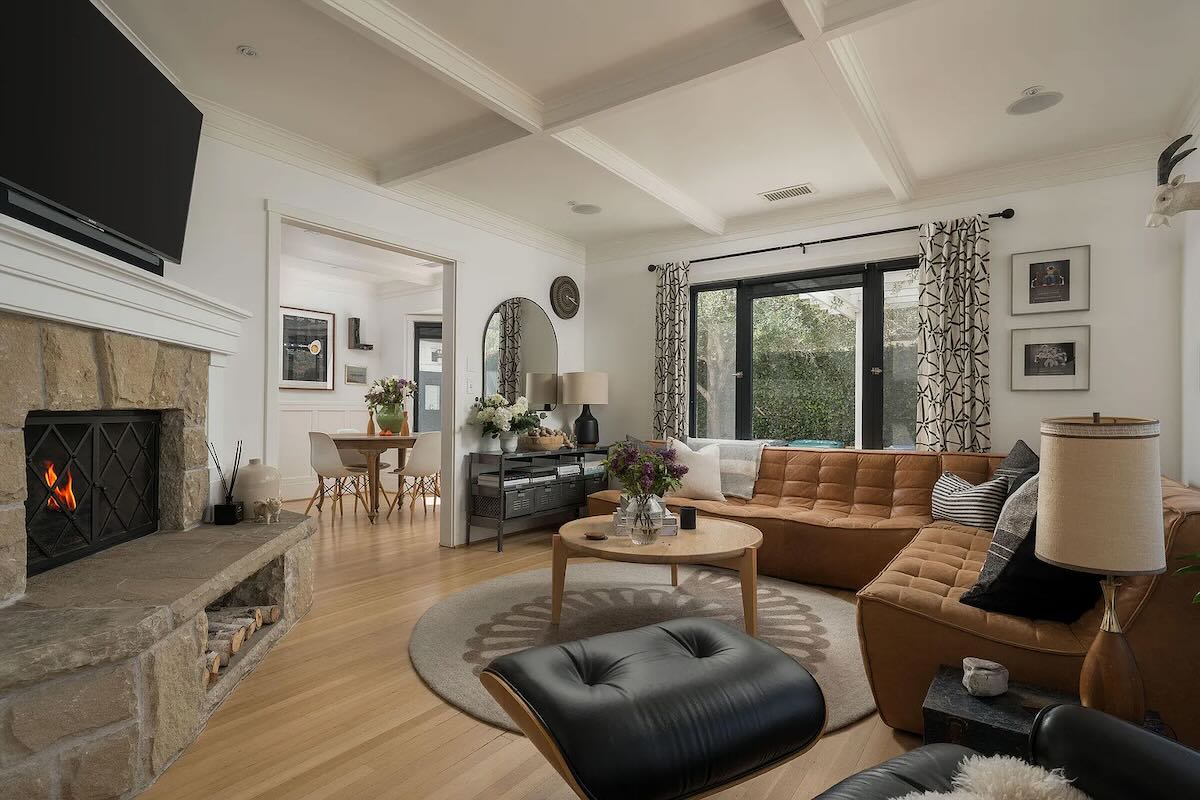 Thanks to a bunch of outbuildings, size is less of a concern at another midcentury gem, 930 Andante Road ($4.385 million), at the end of a Mission Canyon cul-de-sac stacked with neat homes (including the Whale House). Designed by Edwards-Pitman and built in 1964, the main house is a total beaut—albeit with quirks like a primary open to the living room below and a baffler of a room—and the one-acre lot feels like a world of its own. The outbuildings include a garage with an apartment above it, an art studio, and two cottages, and while far from charmless, they’re not quite up to the level of the main house.