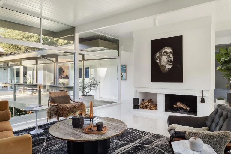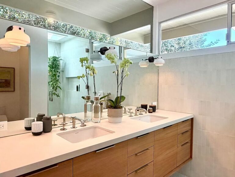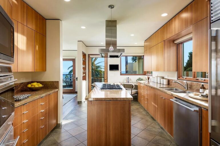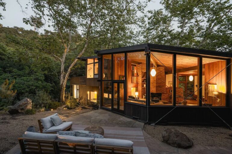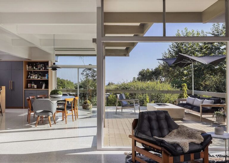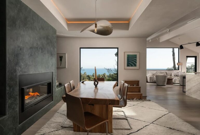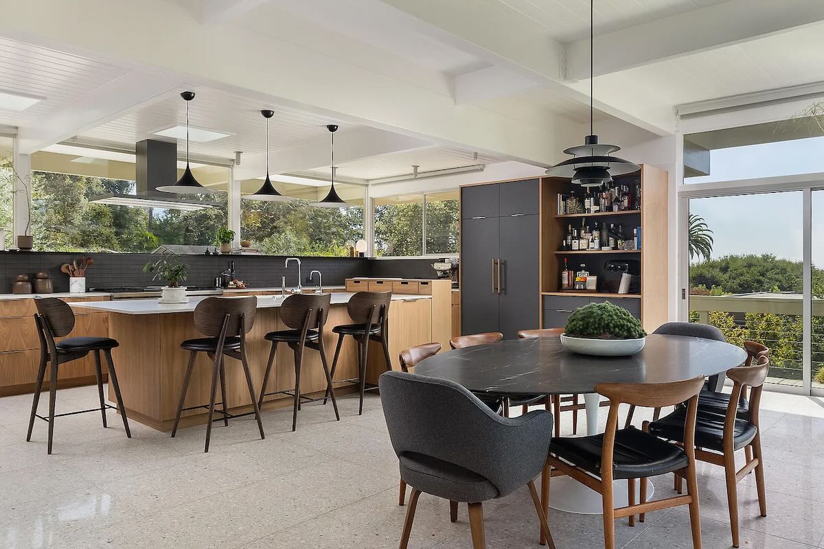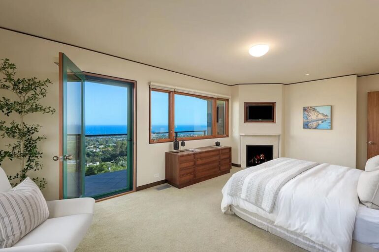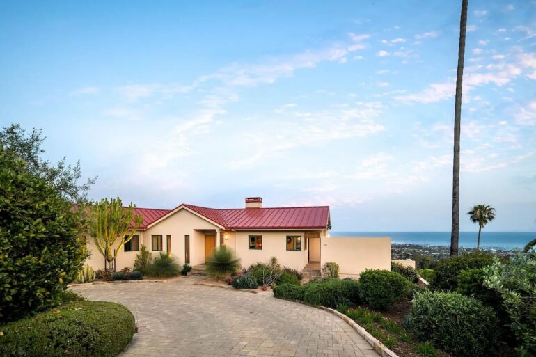 Stylish midcentury is rare in Santa Barbara, even more so when it’s turnkey. The seller of 820 Summit Road ($5.195 million) on Eucalyptus Hill paid $3.45 million for the 1962 house in the fall of 2021 and made it look really good. (Before photos are here.) Floor-to-ceiling windows are everywhere on the south and west sides, with a glimpse of the ocean and a spacious yard below. But it’s not big: there are just two bedrooms, neither of which is huge.