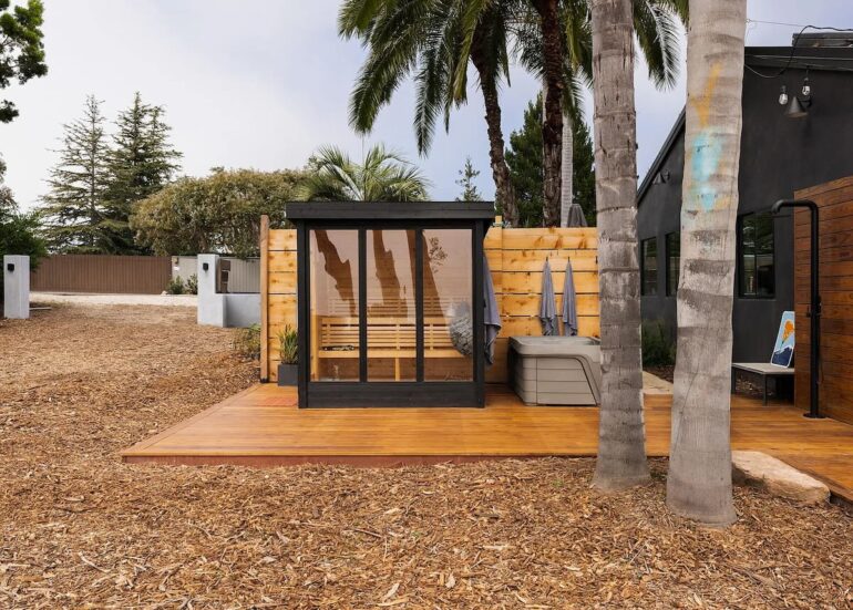 6635 Arozena Lane ($6.5 million) is at the end of a private cul-de-sac off south of Route 150 (i.e., the road to Ojai), with pictures windows in every room showcasing the view to the south. (Understandable, but the effect is like being in a multiplex where every theater is showing the same film.) It’s a sweet setting, and while one can admire the unwillingness to get bogged down in maintaining landscaping, a bit of refinement would help. The 1989 ranch house has been given a contemporary redesign that looks sharp; two of the four bedrooms were sacrificed to make a family room, which leaves one true guest room (with a hallway bath). It’s a great set-up for a couple, with an office (or maybe two) for each party. P.S. A sauna with windows is an excellent invention. P.P.S. We’re being watched.