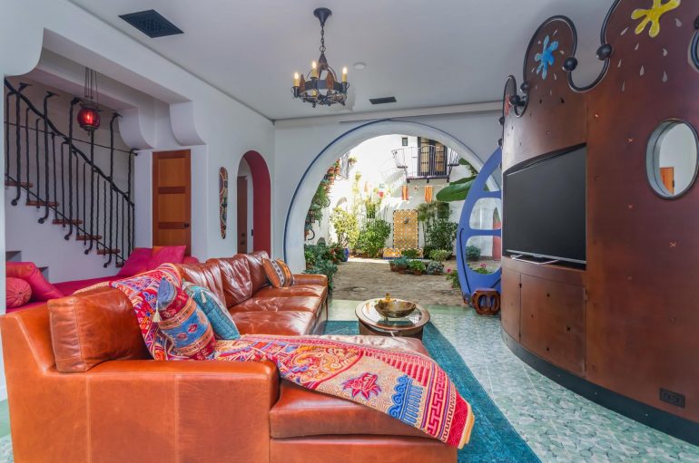 The whimsical work of local architect Jeff Shelton can be seen all over town—at least from the outside. (Here’s his handy map.) Interior glimpses are far rarer. Thanks to the listing for apartment #3 at 225 E. Cota, currently available for rent for limited periods, we can see how Shelton’s Seuss-meets-Gaudí aesthetic looks on the other side of the wall. It helps that the owner shares the sensibility.