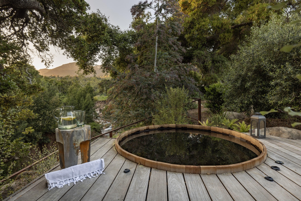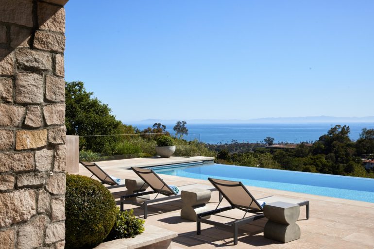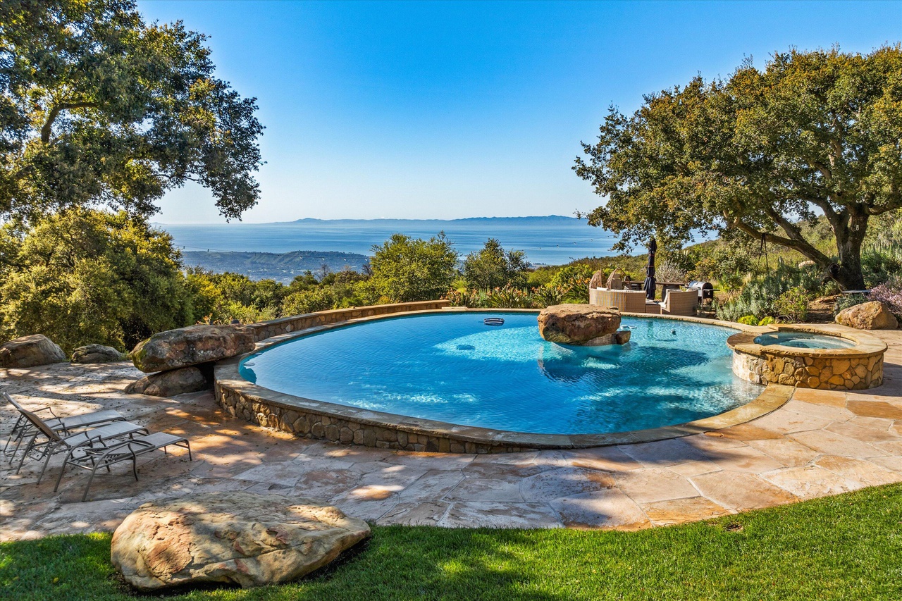 ••• 2671 Painted Cave Road ($4.9 million): 16 acres up in the hills with a McMansion-y house, majestic views, and the best pool we’ve seen in a while (below).