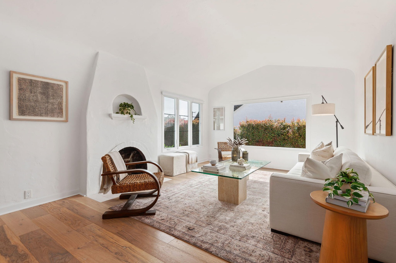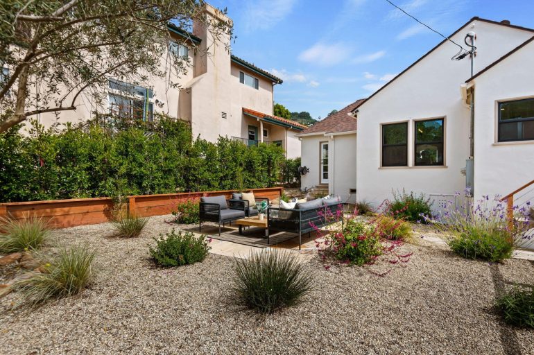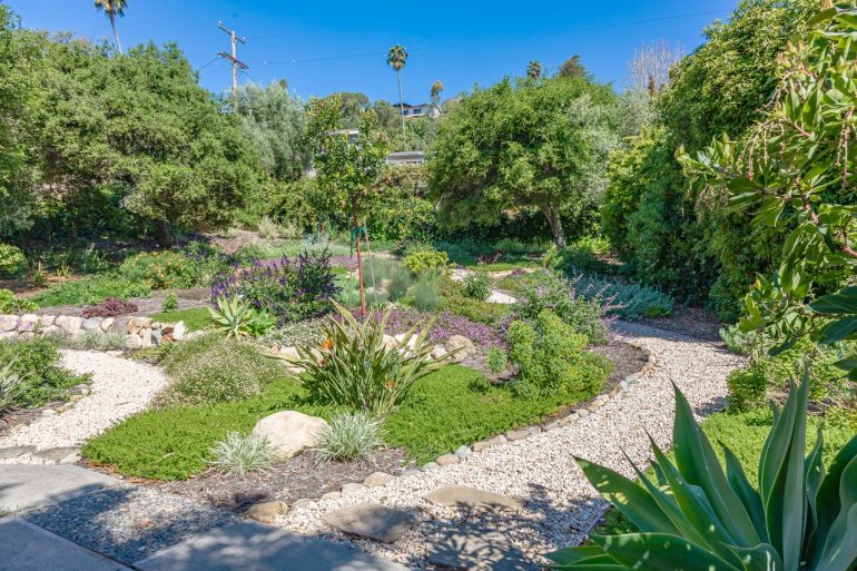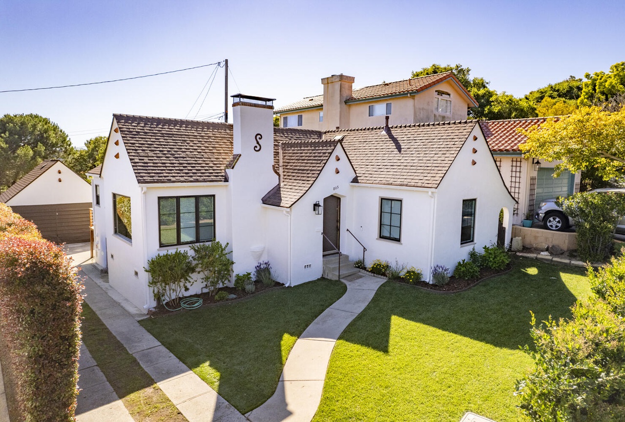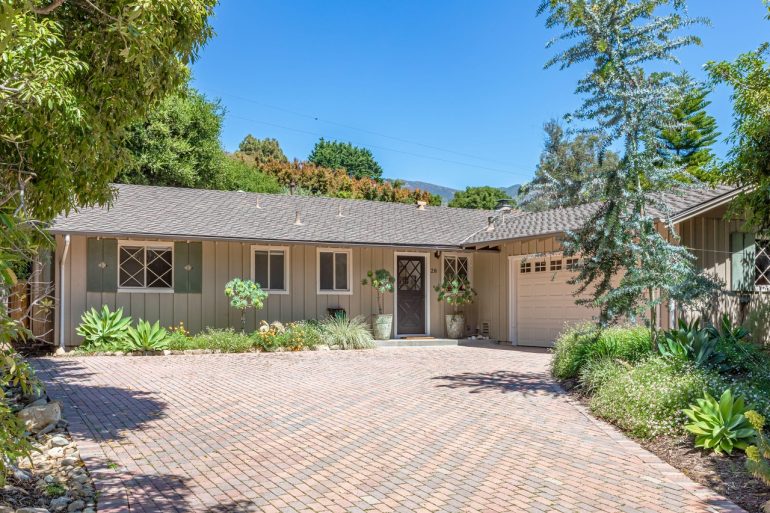 The 1926 cottage at 805 Soledad Avenue ($1.745 million), on a private lane near the east end of De La Guerra Street, has supercute architectural moments—in particular the roofline, the fireplace, and the arched doorway. It has been slathered in white paint to crisp effect, but the two bedrooms share a hallway bath and the kitchen is a bit of a Monet, with vintage cabinetry and shallow counters. As for the backyard, I suppose the justification for the xeriscaping is that the water budget needs to go toward getting that hedge to grow.