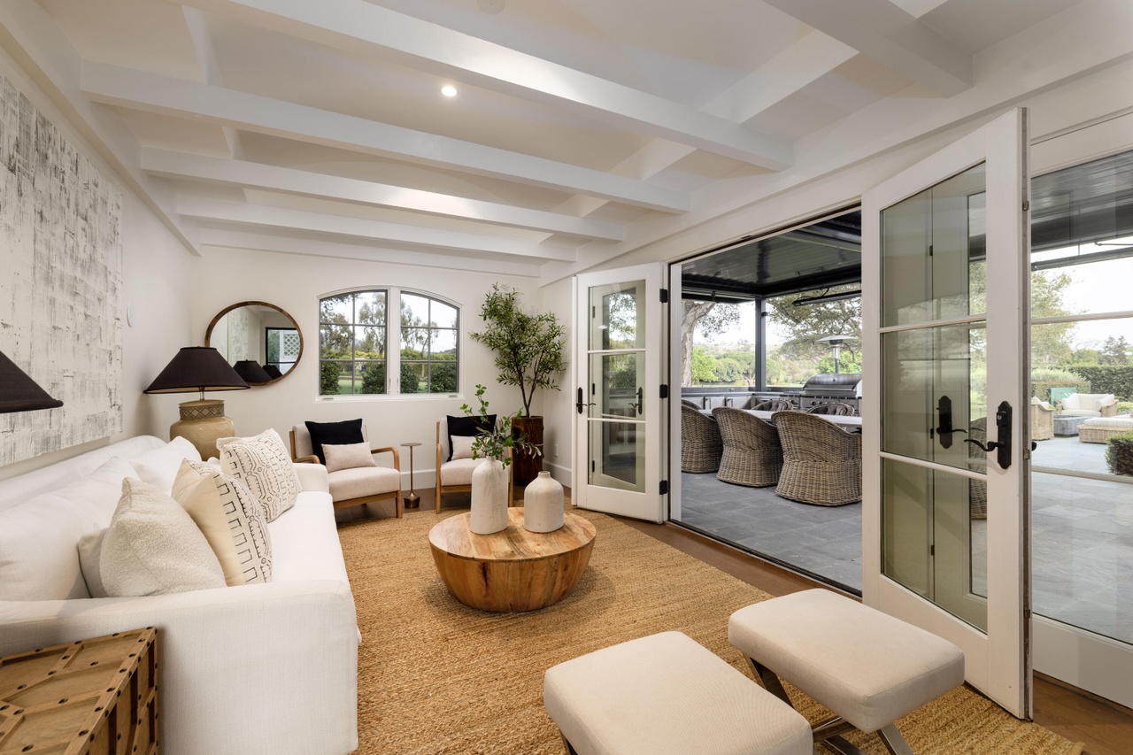 I love the upscale-country-inn energy of 150 Cedar Lane ($5.995 million) on the western side of Eucalyptus Hill. The 1965 house feels like it could date from decades earlier. I haven’t seen it in person, but if I were to, I would investigate to what degree the house next door—which is a little close for comfort—impacts the property.