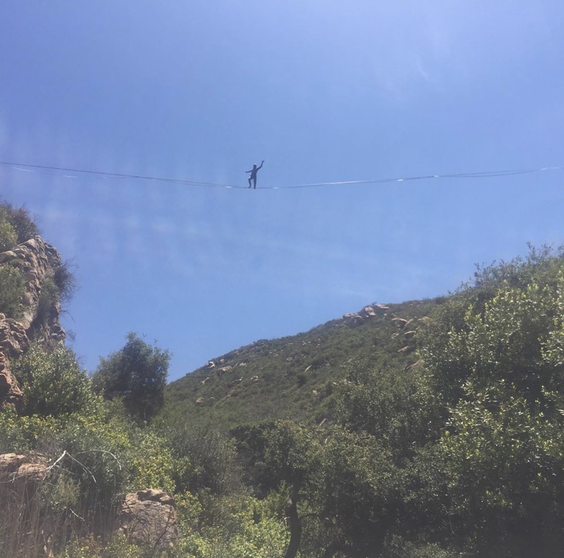 ••• Los Padres Forest Association took this photo of someone slacklining above Gibraltar Road. UPDATE 5/15: It was evidently put up by Santa Barbara Slackline.