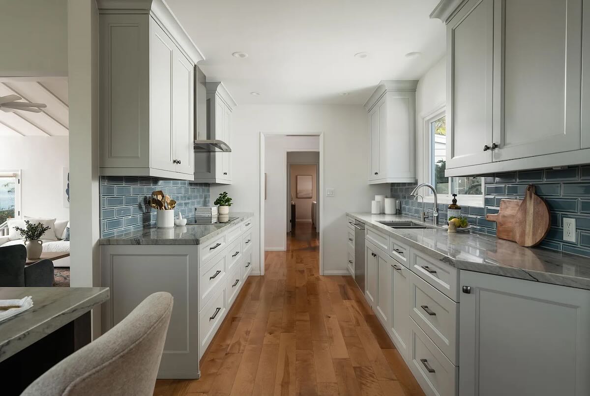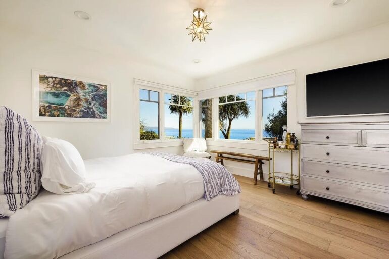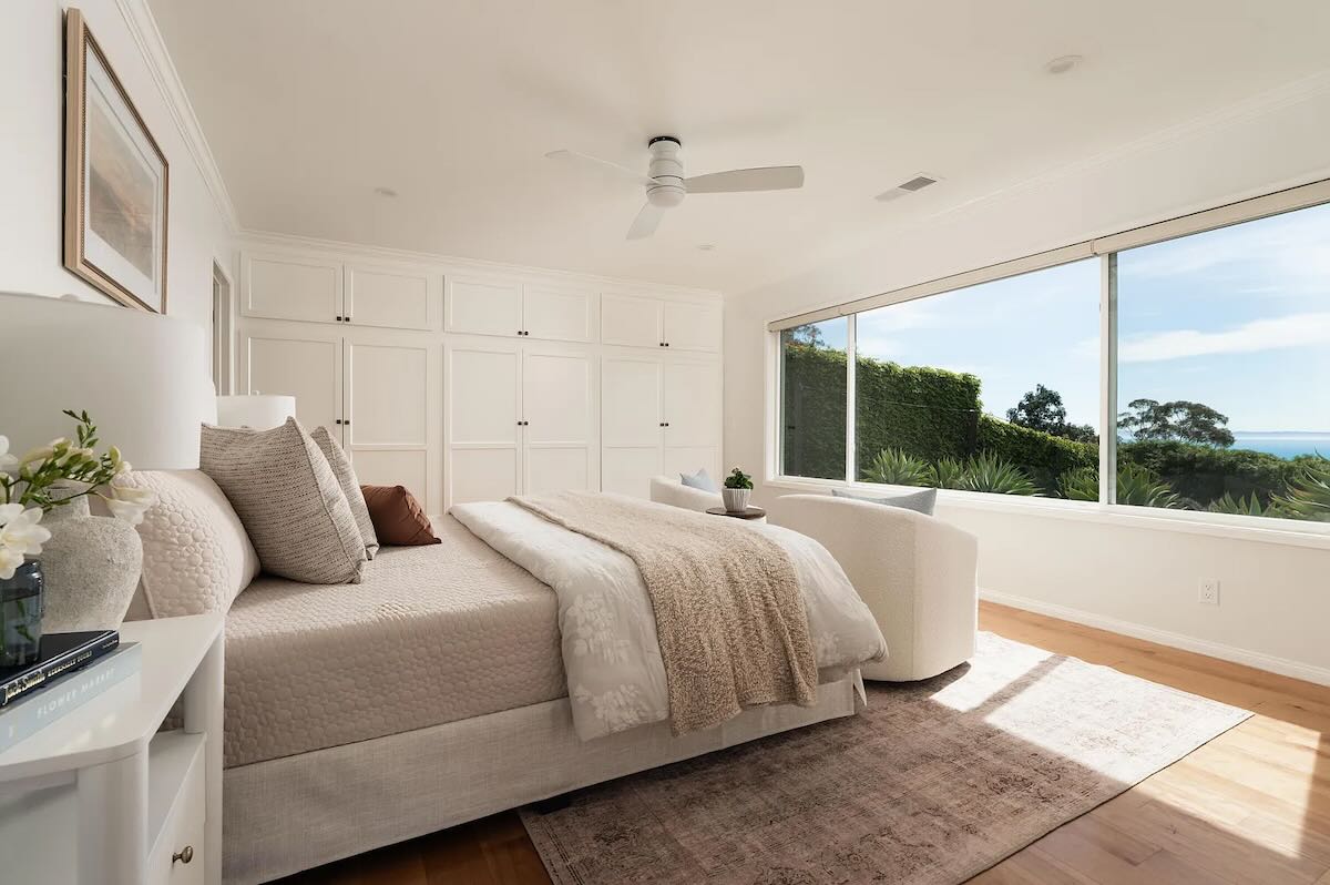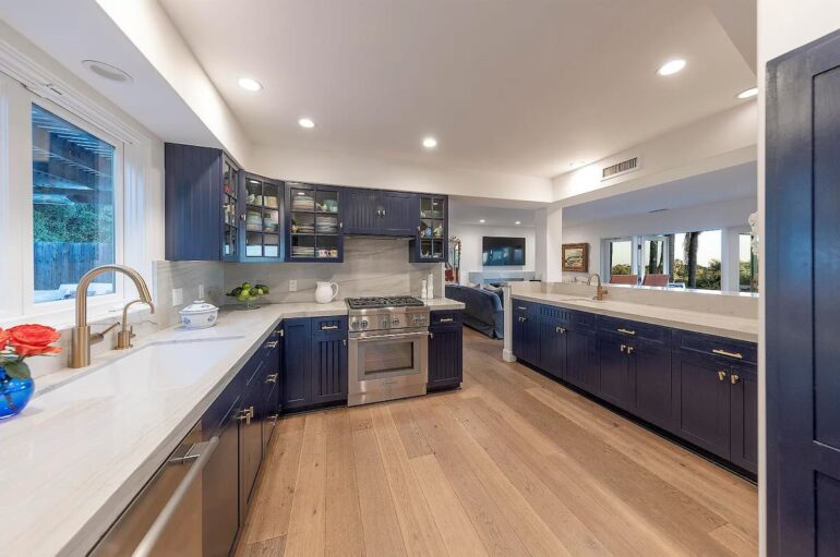 1643 La Vista del Oceano ($4.999 million) is the latest property on the Alta Mesa street to come on the market. It’s priced lower, but there’s more required to bring it up to date—and even with new surfaces, you’ll still have to walk up a flight of stairs to reach the main floor (and again to get to the primary), and it has funky angles and limited outdoor space facing that amazing view.
