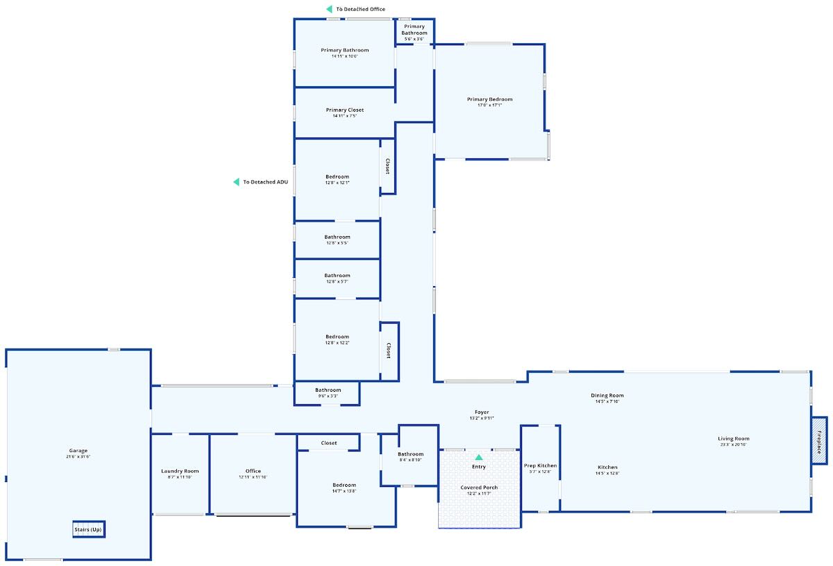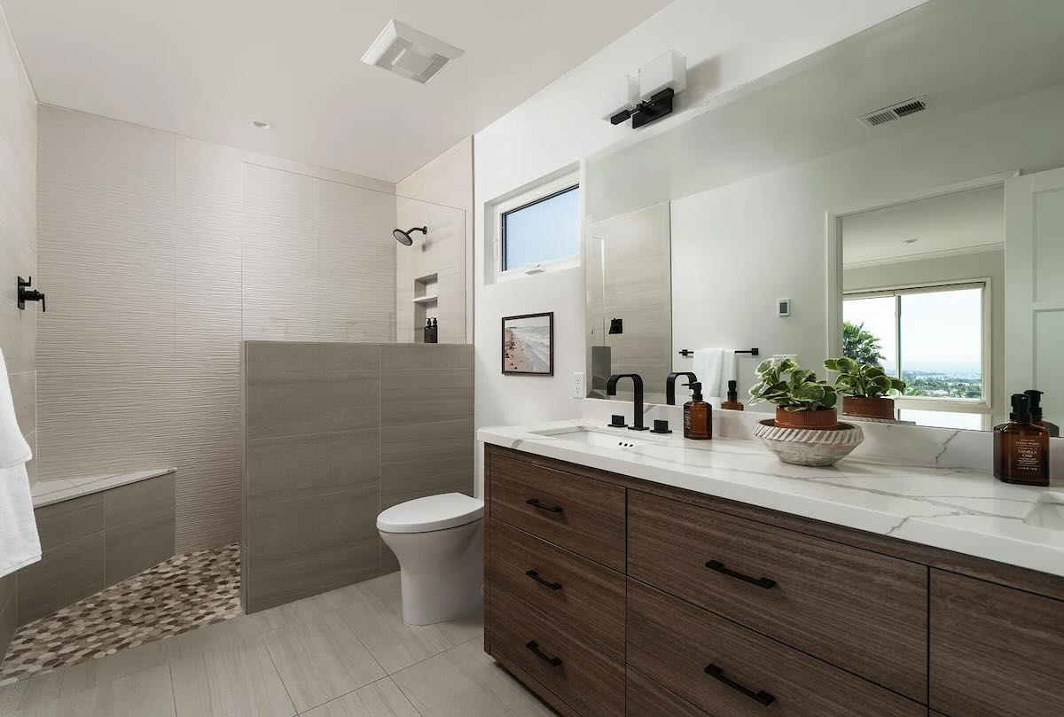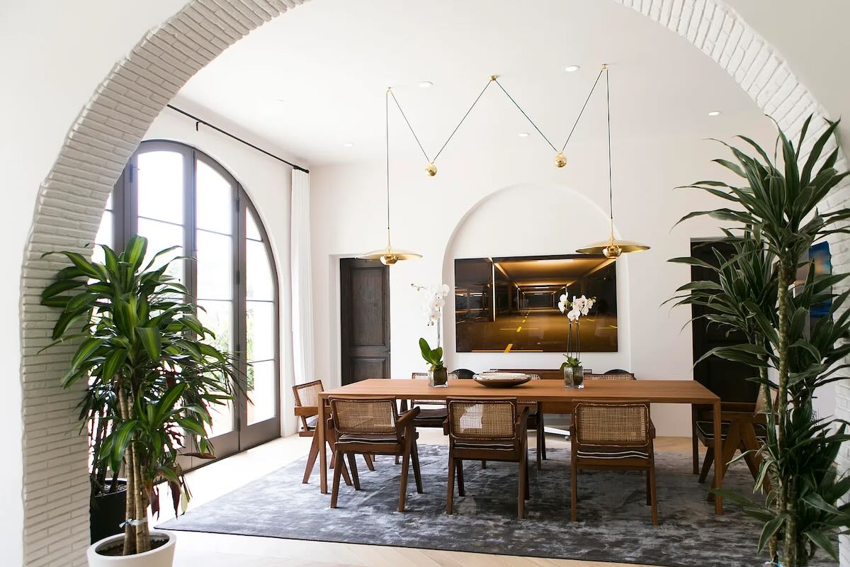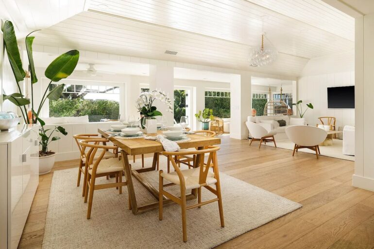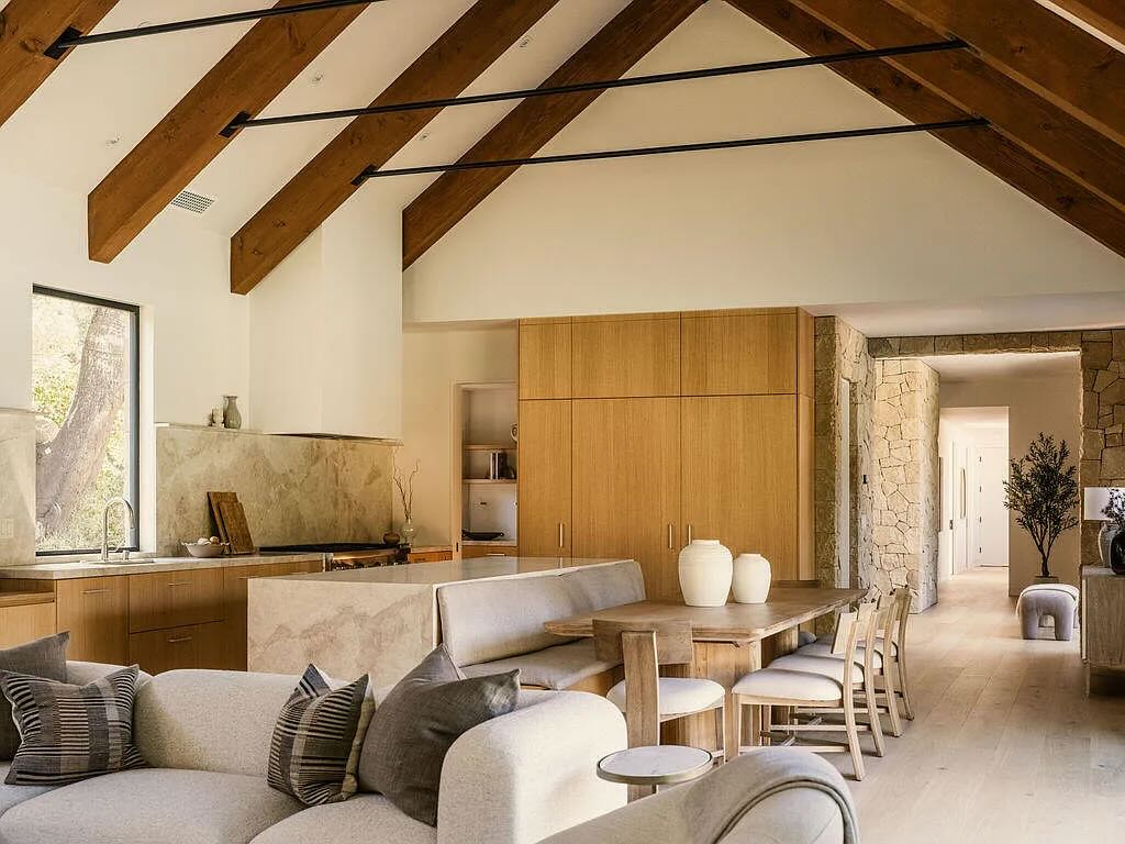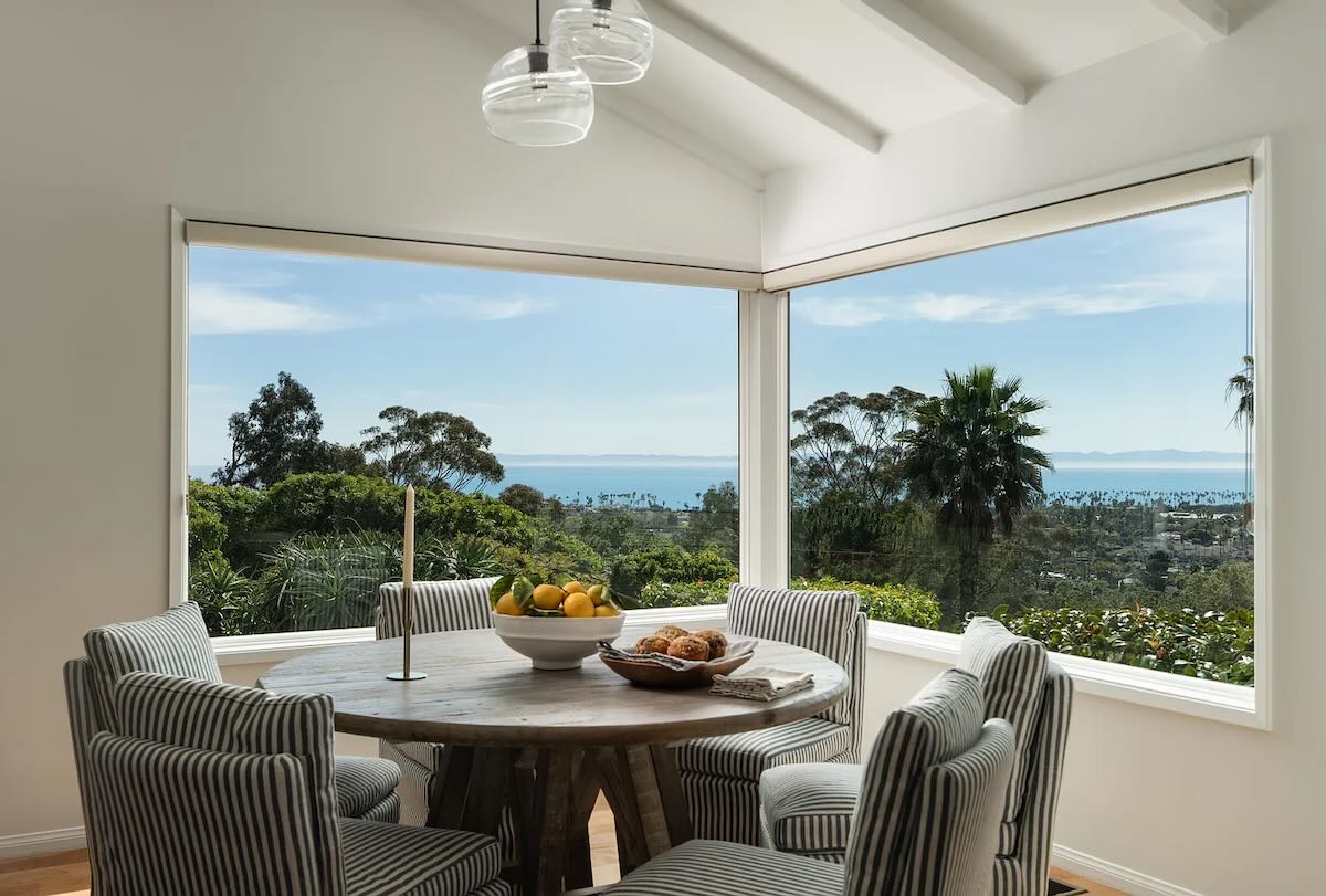 The handsome new construction at 915 Camino Medio ($12.995 million), between Laguna Blanca (the lake) and Laguna Blanca (the school) in Hope Ranch, prioritizes bedrooms over living space. The latter combines kitchen, dining, and living into one great room, with the dining area pushed up against the kitchen island. And there’s no family room, unless you convert one of the four bedrooms or the office.