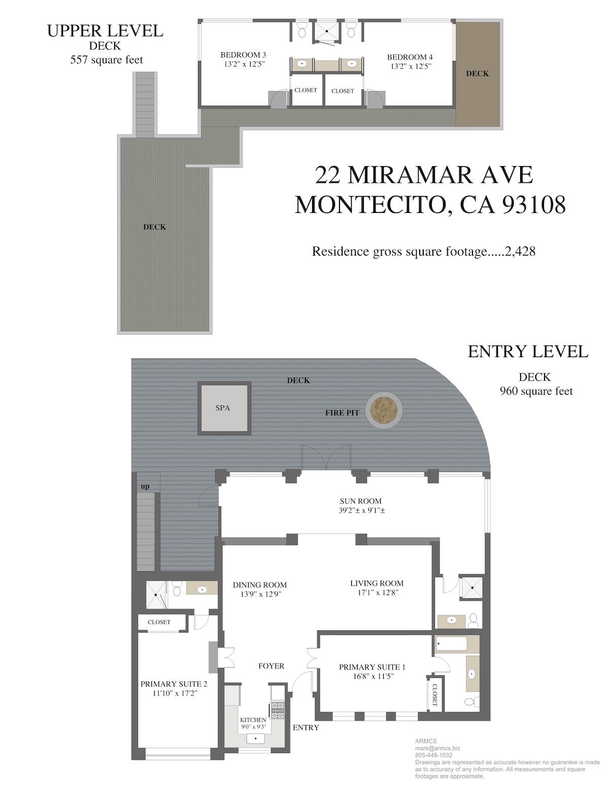 And I wish there was a floor plan for 22 Miramar Avenue ($8.995 million), because now I have to try and explain it. [UPDATE: The listing agent sent over the floor plan, added below.] There are two en suite bedrooms on the ground floor, along with a pretty sunroom, a living and dining area, a nook of a kitchen, and a bonus bath. On the second floor, accessible only via exterior staircase, are two more bedrooms with a jack-and-jill bath (each side gets a toilet, an improvement on the usual sitch) and a lovely deck. The interiors have been cleaned up nicely, but the layout is a quirkfest—cuter in a weekend getaway than in a permanent residence. Either way, the location steps from Miramar Beach and the Miramar resort is a winner. P.S. Tall people can admire the ocean from the ground floor; the rest of you have to go upstairs.