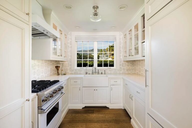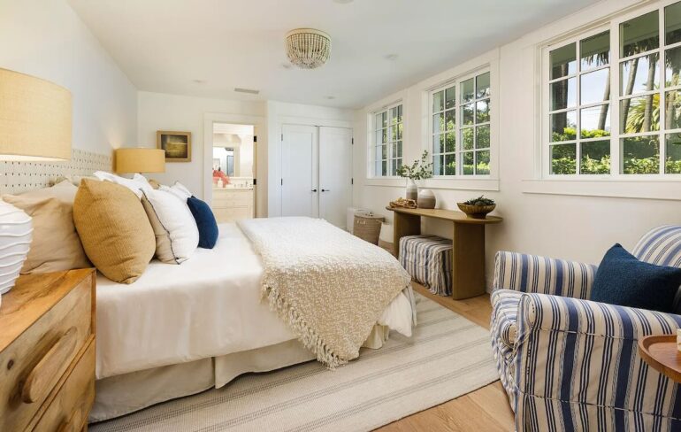 I wish there were more photos of 620 Stonehouse Lane ($19.7 million) for you to enjoy, because it’s a beaut, totally snazzy without feeling like it’ll be dated by year end. The 2001 architecture is a bit blocky from the front, but the interiors are impeccable; I was a goner from the moment I saw the foyer’s black-and-white marble floors. Is it worth $20 million? If turnkey is everything to you, sure. The upstairs primary (swell as it is, with huge dual closets); lack of a significant view or guest house; and location on a fine-but-not-A+ street (and just one house from East Valley Road) may prove to be speed bumps.