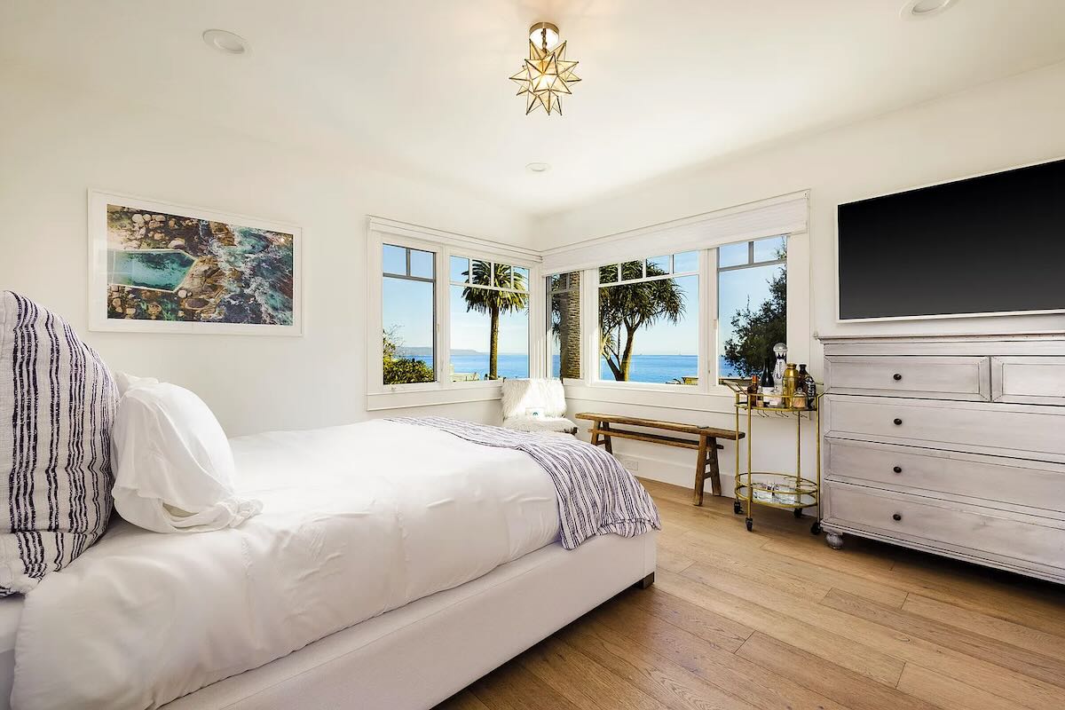 And I wish there was a floor plan for 22 Miramar Avenue ($8.995 million), because now I have to try and explain it. There are two en suite bedrooms on the ground floor, along with a pretty sunroom, a living and dining area, a nook of a kitchen, and a bonus bath. On the second floor, accessible only via exterior staircase, are two more bedrooms with a jack-and-jill bath (each side gets a toilet, an improvement on the usual sitch) and a lovely deck. The interiors have been cleaned up nicely, but the layout is a quirkfest—cuter in a weekend getaway than in a permanent residence. Either way, the location steps from Miramar Beach and the Miramar resort is a winner. P.S. Tall people can admire the ocean from the ground floor; the rest of you have to go upstairs.