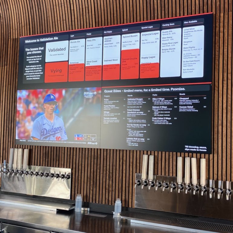With little-to-no experience in hospitality, the Deignans admit they have a lot to learn, but they’re also bring a fresh perspective. “We’ve been taproom patrons our whole lives—well, not our whole lives,” says Brian. “And we thought hard about how to improve the experience. Take bathrooms—there are never enough, and they’re always dirty and gross. The city only required us to have two, but we built five.” And because no one likes fighting for a bartender’s attention, Validation Ale allows you to start, manage, and/or close your tab by using one of the QR codes on the bar and tables. And thanks to the reverse-osmosis tap on the wall, you never have to ask for water.