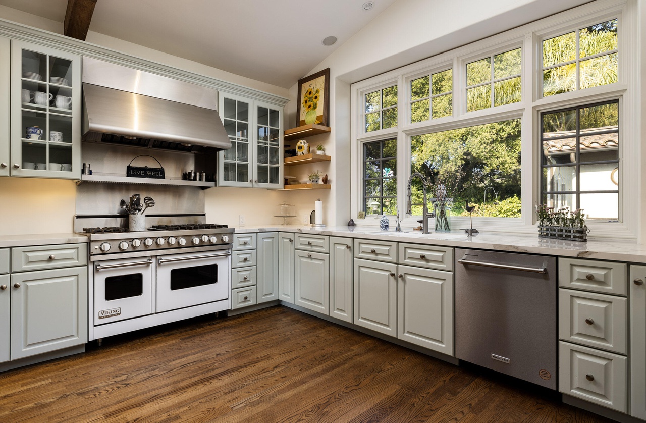 While 1122 Camino Viejo ($5.2 million) can come off a bit like a millwork showroom, the rooms have gracious proportions and the backyard goes on forever. Change out the surfaces—did the primary bath only get half redone?—and you’ll have a nice spread.