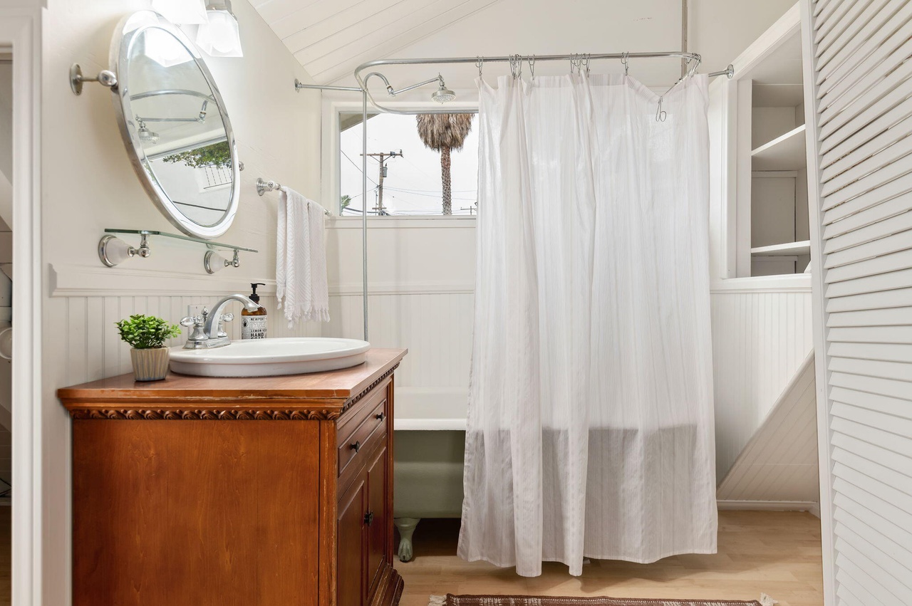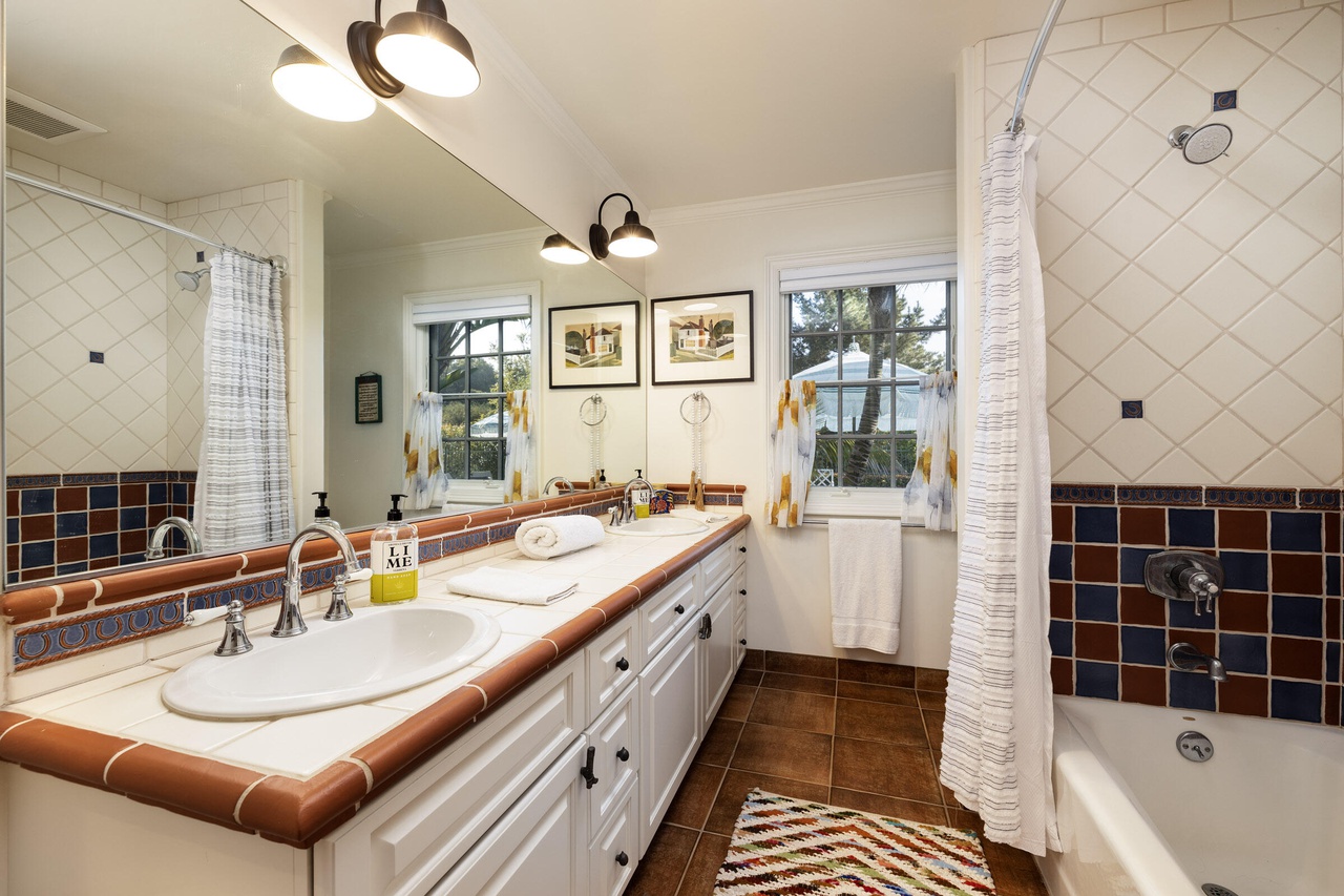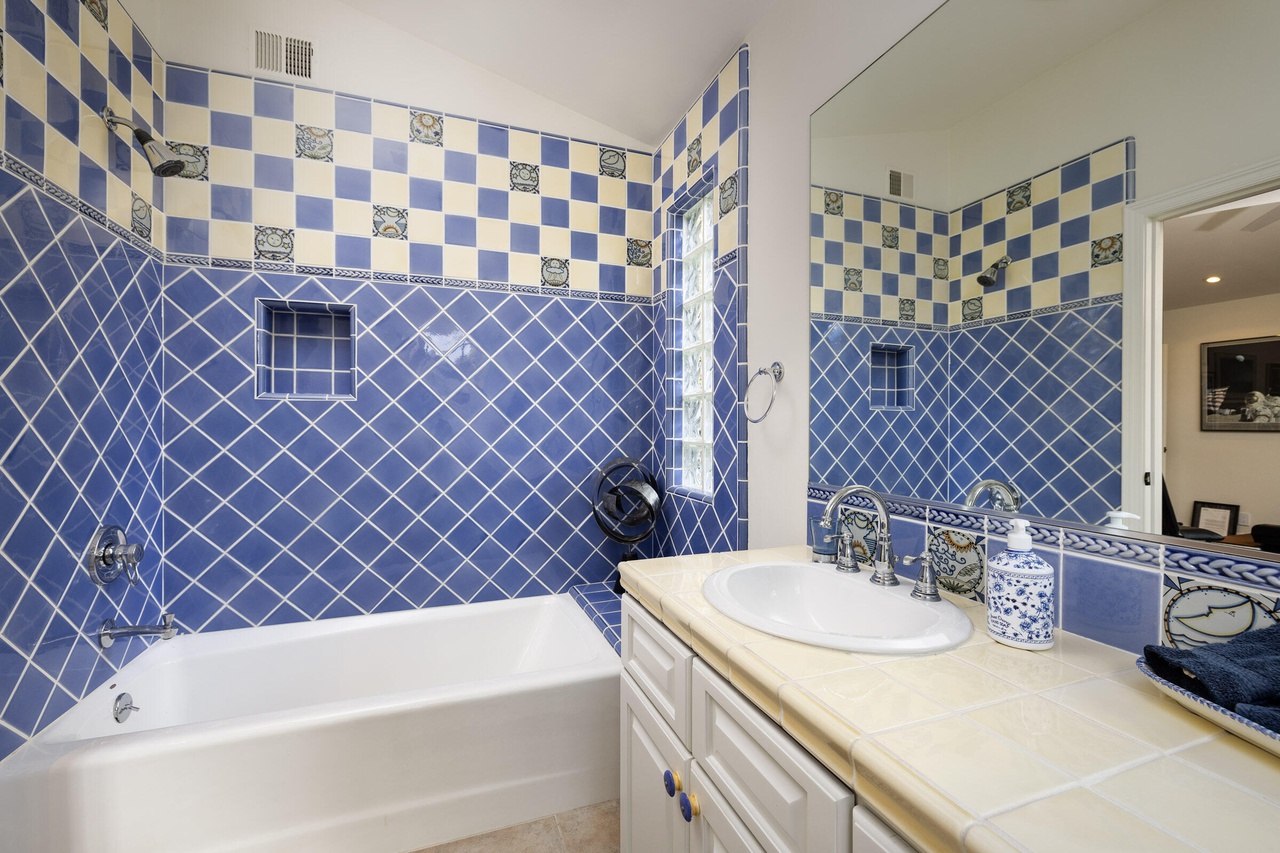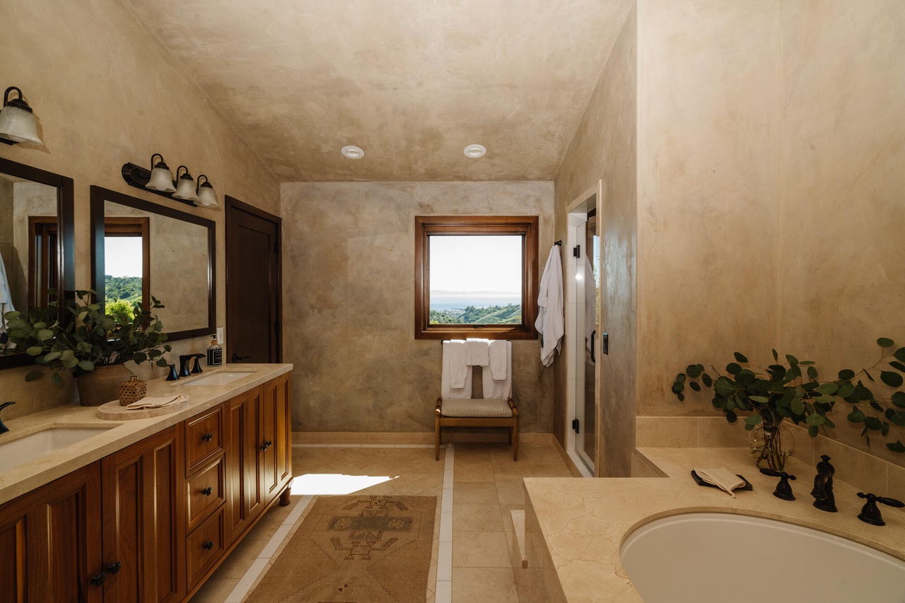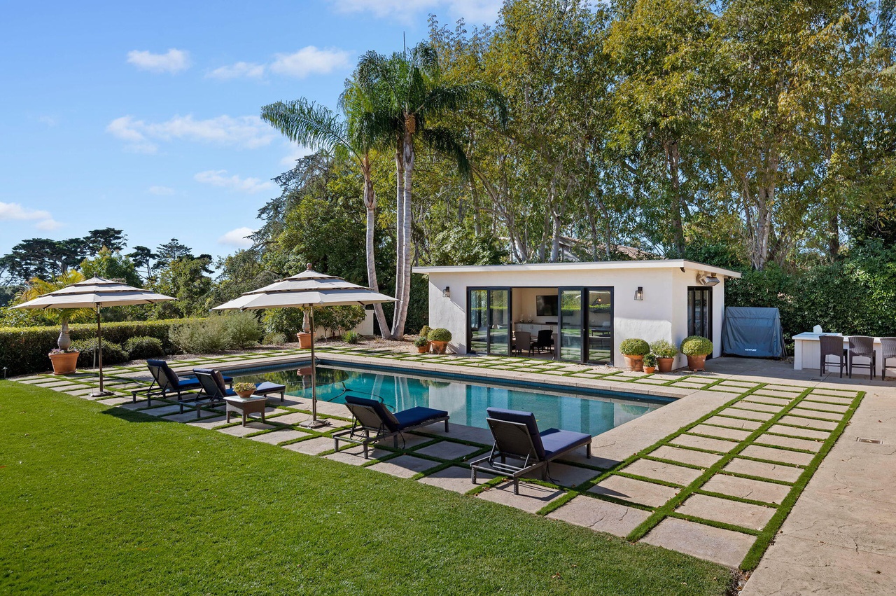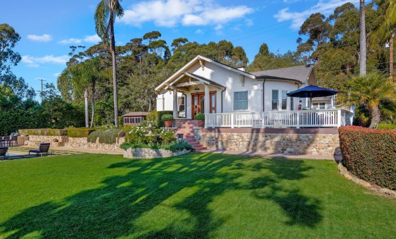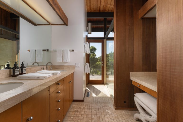 The listing for 1020 Via Tranquila ($7.995 million) says it has been “tastefully remodeled by the current owners,” who bought the 1972 Hope Ranch house for $4 million in February 2021. While it’s refreshing to see nice non-staging furniture, the bathrooms are unconvincing. The property is 2.24 acres and includes a guest house.