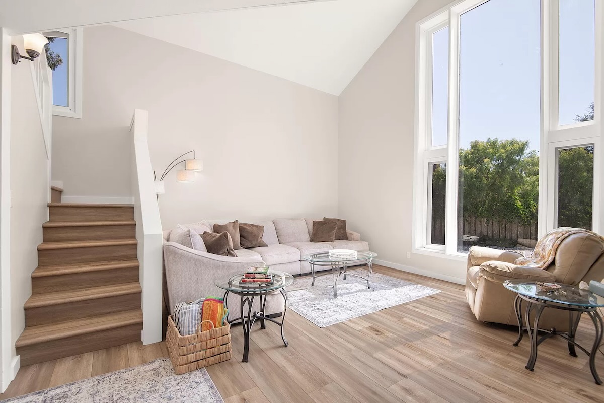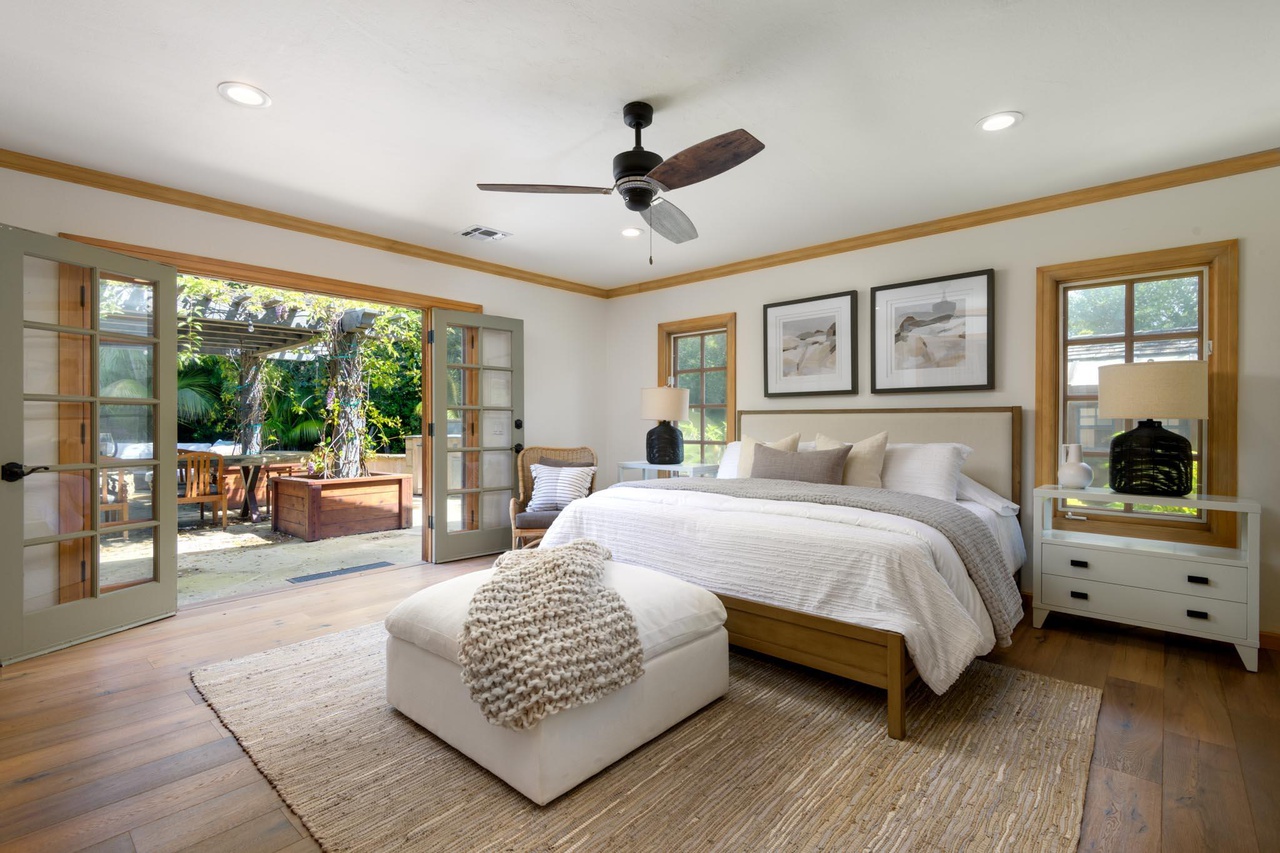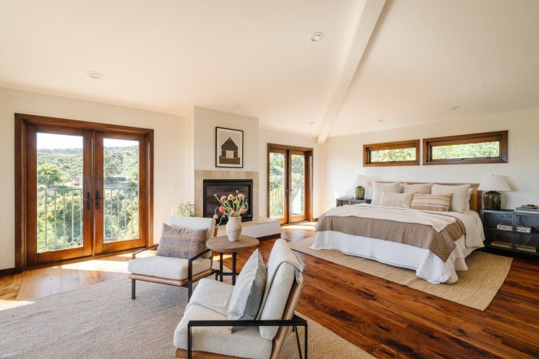 The 1973 house at 1821 Gibraltar Road ($4.495 million) in Cielito has an indisputable coolness: it’s off the street, embedded amid oaks, with photogenic rooms at every turn. The best views are in the dining room—the least-used room in most houses—and a guest room, while the kitchen and primary bedroom are in the rear. Still, there’s wow all over the place. Keep some money in the budget for window treatments or sleep masks.