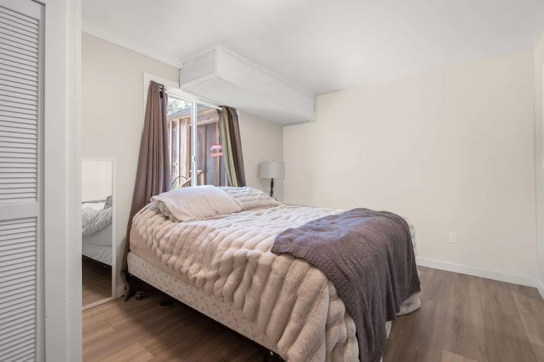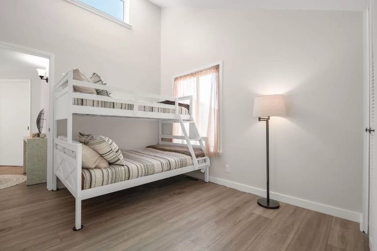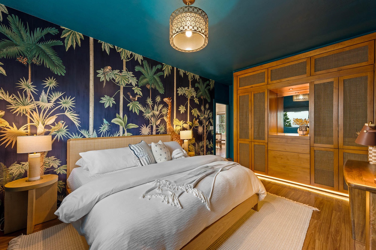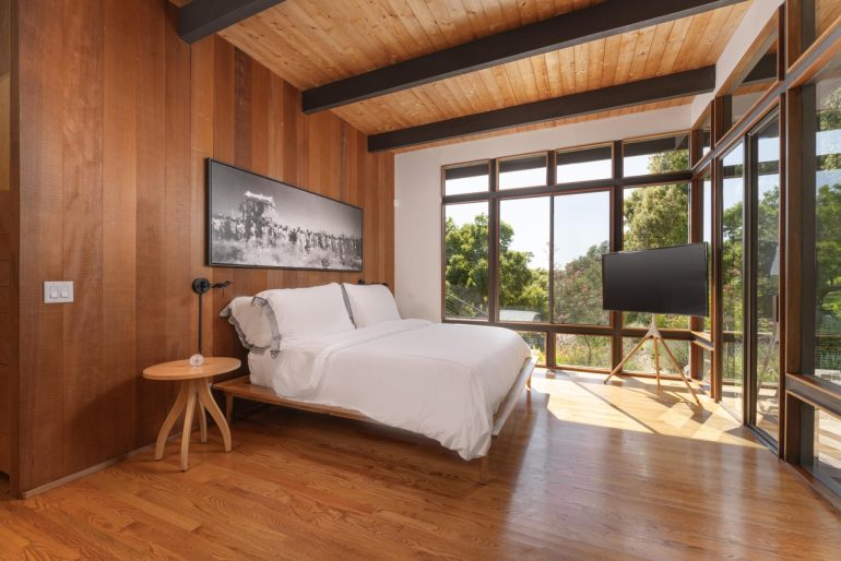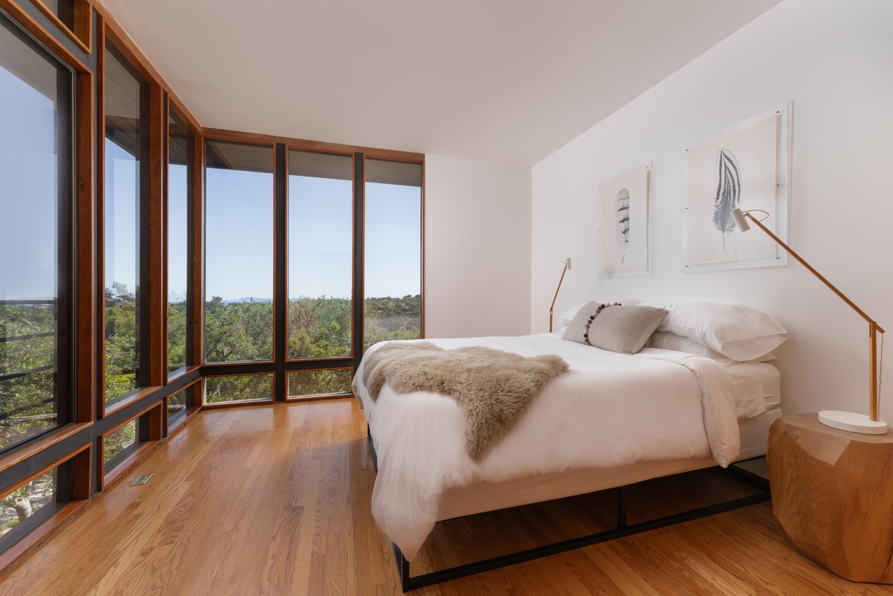 Speaking of views, the spec reno at 2929 Selwyn Circle ($3.695 million) in Mission Canyon—the seller paid $1.8 million in November 2023—has a killer one that appears dramatically as you descend from street level. The neighbor to the south is almost close enough to touch, as you can see in the guest room photo. P.S. Least comfortable banquette ever?