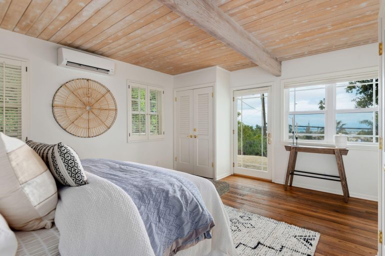 From the outside, 3281 Padaro Lane ($19.5 million) looks like it might be another 1970s Padaro house in need of an update. But inside is sharp, especially the primary bedroom upstairs, with its own deck. (Keep focused on the ocean and you can ignore the red roof next door.) Using all six bedrooms as such is unlikely—only three of the guest rooms are en suite, and another has a half bath—but with the addition of a pocket door, you could easily convert the back of the house into a separate apartment. P.S. Love the custom wallpaper in one bathroom, with family photos and mementoes. Might be weird to keep it, though.