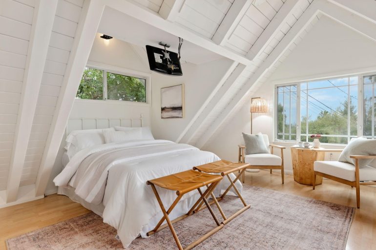 2401 Medcliff Road ($8.4 million) is one of the 1970s West Mesa houses that were originally part of Mike Love’s compound, before they got sold off in the early 1980s. It cuts a striking figure, to be sure, and the Mesa Lane Steps to the beach are down the block. But it needs a thorough redo—take the bedroom accessed via the garage or that terrifying soffit-like thing above one of the beds—not to mention landscaping that involves plants. P.S. Is this staged?