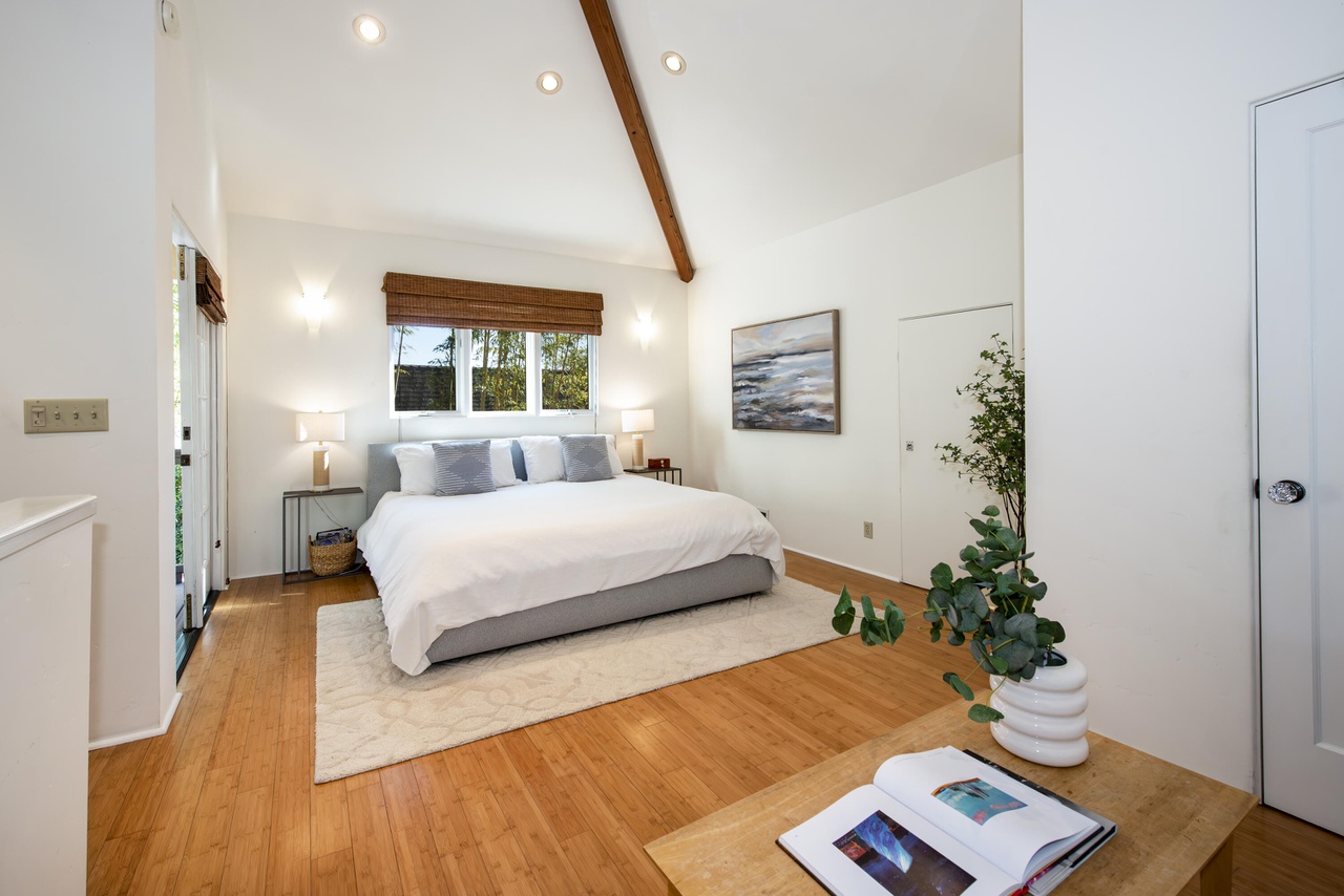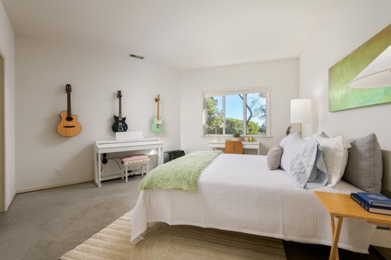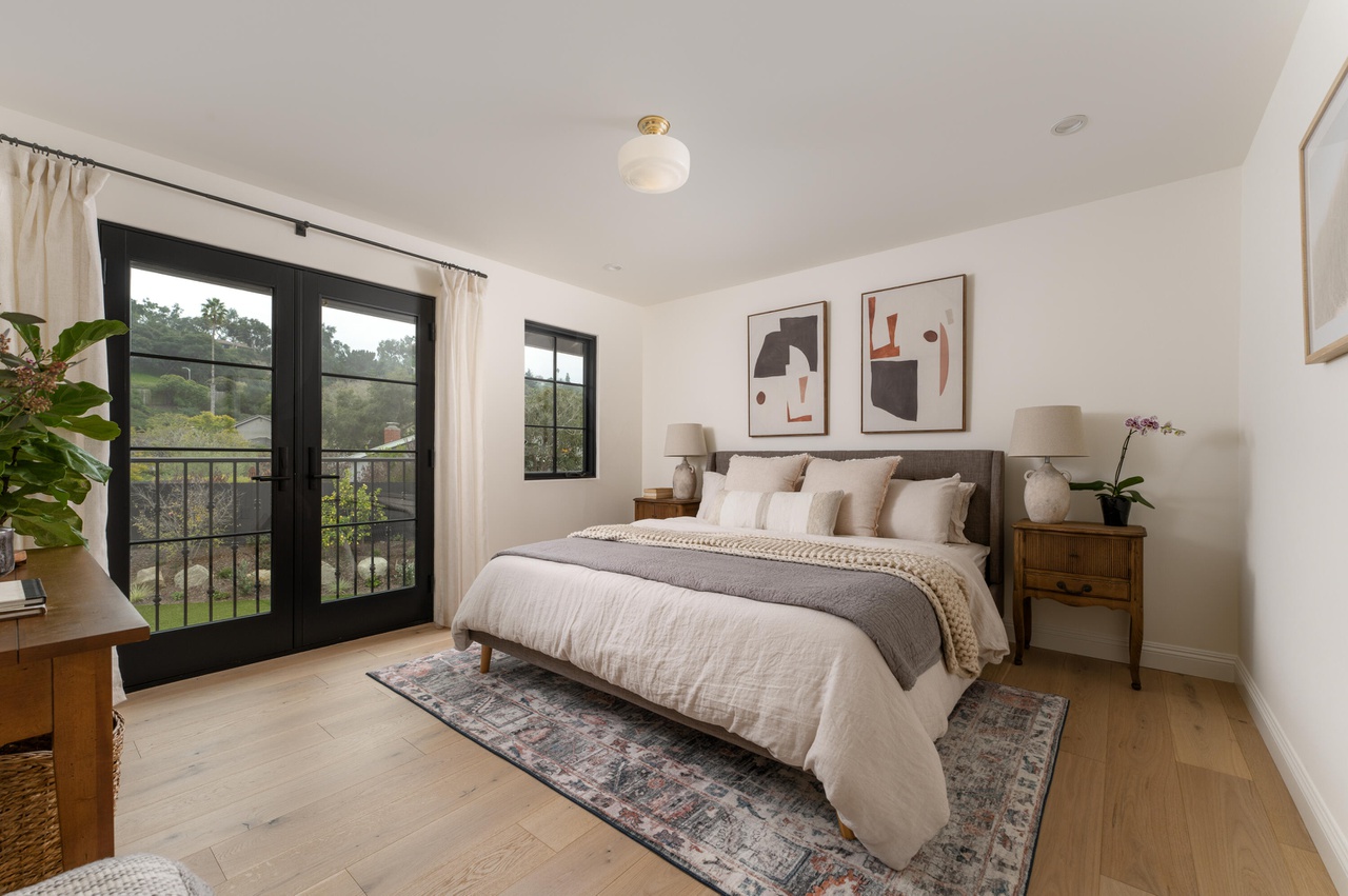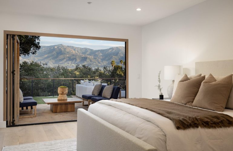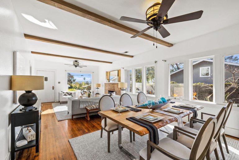 Located above Carrillo Street at the base of Alta Mesa, 1018 Belmonte Drive ($3.995 million) is an impressive spec reno—the sellers paid $1.844 million in December 2022—with myriad premium-level details. The house is pretty in a sophisticated way, embracing warm tones rather than the black-and-white standard these days. I do wish one of the three guest rooms was en suite, though, and if the house were mine, I’d plant a hedge in front of the black fence in the backyard.