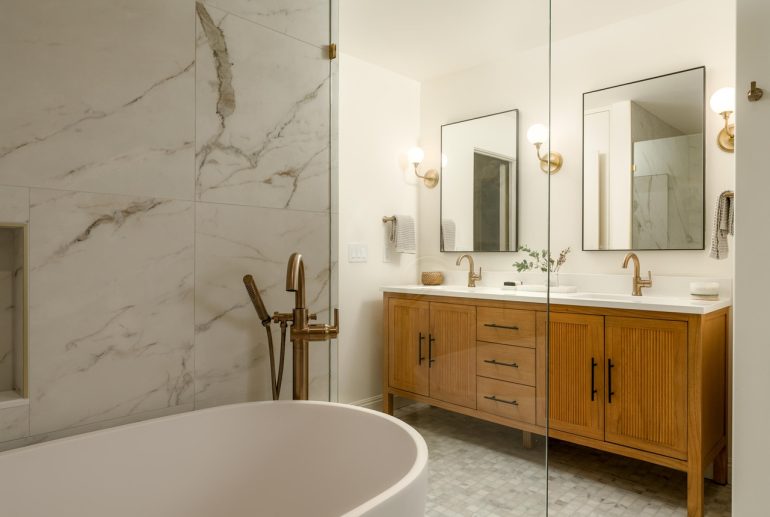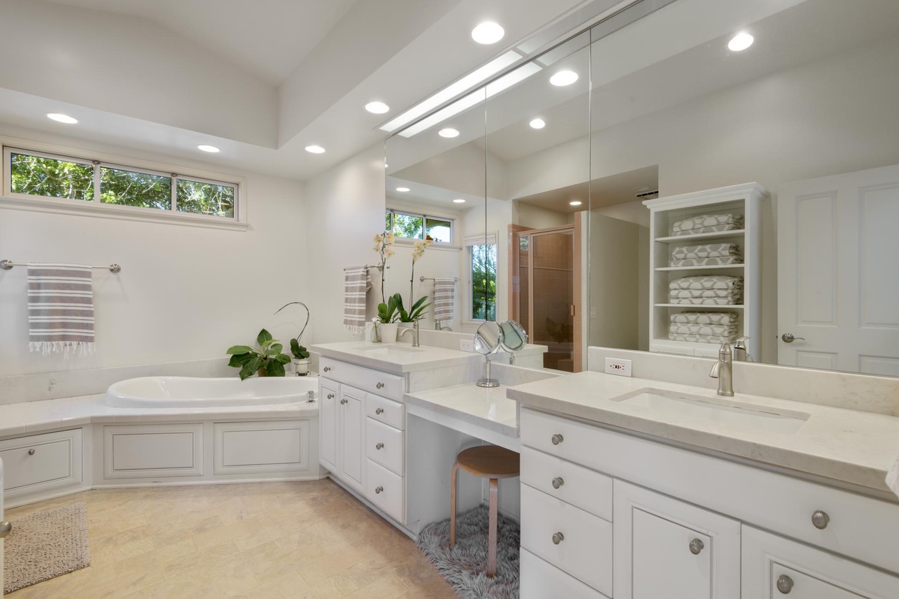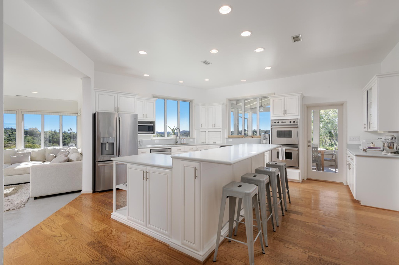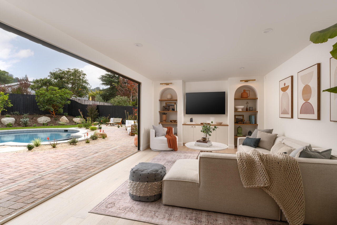 Located above Carrillo Street at the base of Alta Mesa, 1018 Belmonte Drive ($3.995 million) is an impressive spec reno—the sellers paid $1.844 million in December 2022—with myriad premium-level details. The house is pretty in a sophisticated way, embracing warm tones rather than the black-and-white standard these days. I do wish one of the three guest rooms was en suite, though, and if the house were mine, I’d plant a hedge in front of the black fence in the backyard.