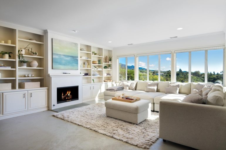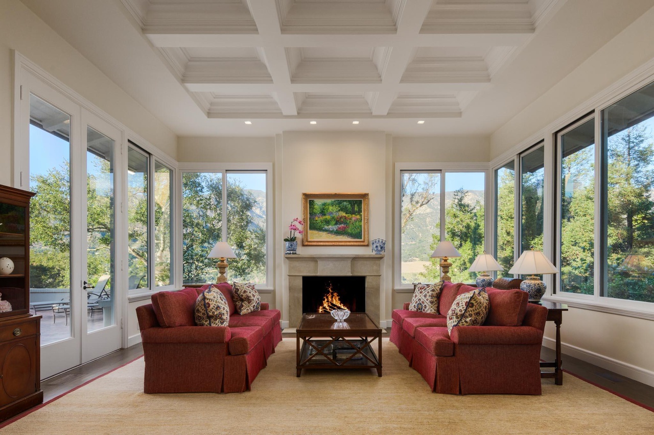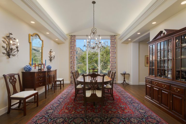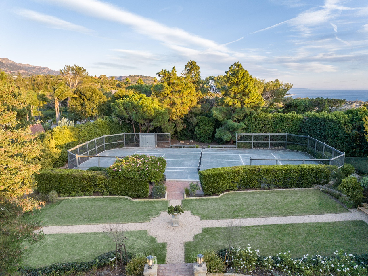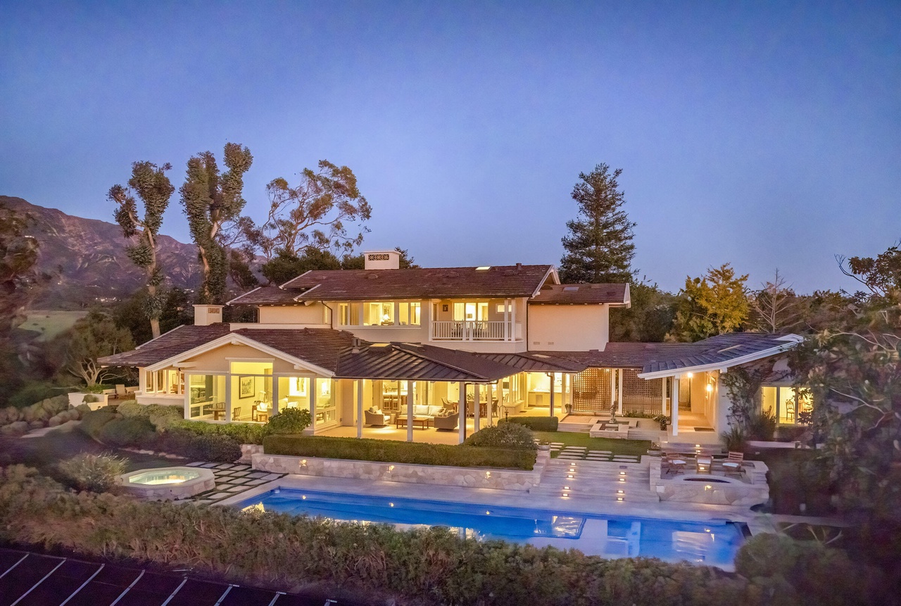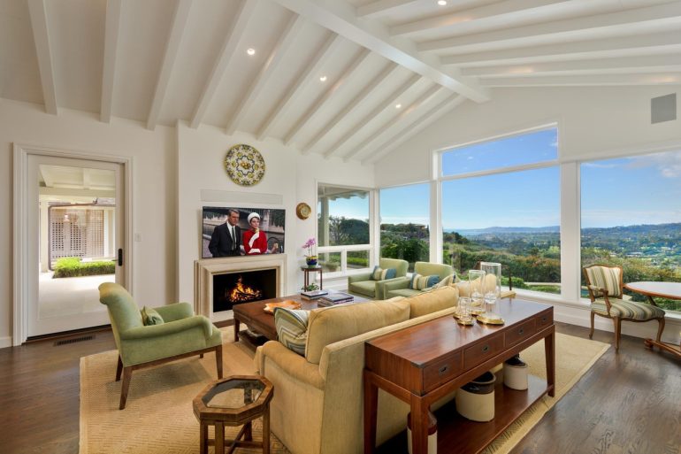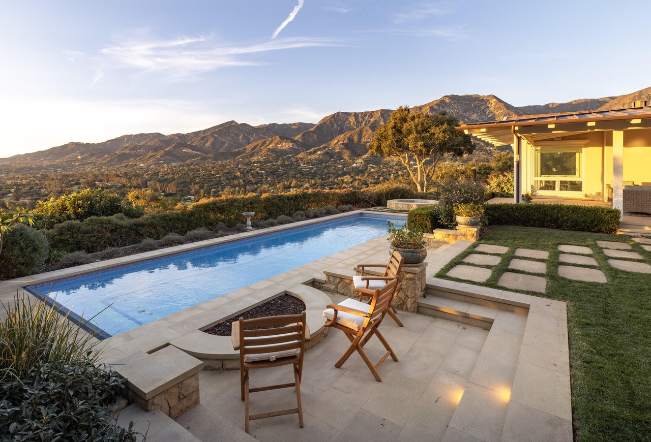 The blocky porte cochère makes 375 Ortega Ridge Road ($12.8 million) feel like a hotel, and it leads to one of those foyers where you wonder which direction you’re supposed to go. The rest of the property flows much better, and there’s a lot to work with: all of the rooms in the three-bedroom main house have generous proportions, and the guest house is off to the side, with its own parking. Plus, the property is 2.2 acres with stunning views of Montecito and the mountains. P.S. Love the water fountain at the clay tennis court.