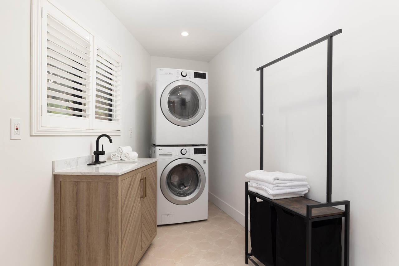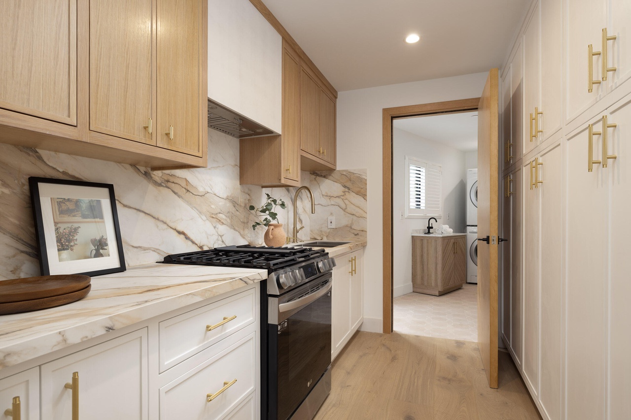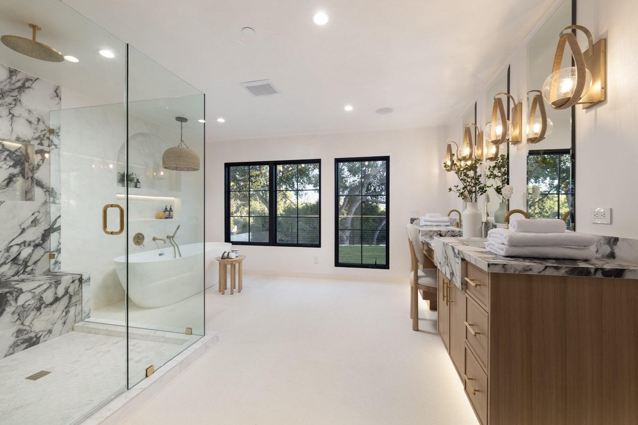 The seller of 1250 Bel Air Drive ($4.395 million), who paid $2.017 million last April, leaned into the midcentury vibe: the 1963 four-bedroom got a snazzy, brassy glow-up. It’s kitted out for a good time, with a wine room off the kitchen, a glam bar, a massive primary bath, and a butler’s pantry with a second cooktop/stove. The laundry room is a hangover moment, though.