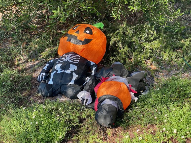 It was a weekday, so there was very little activity in the Village. The desolate air was enhanced by the Halloween decorations splayed about—victims of a windy night, I believe. (I did this walk a while ago, obviously. My muse must have been on vacation.)