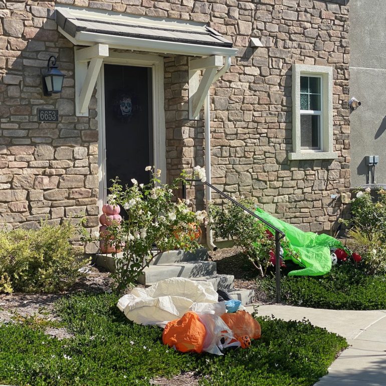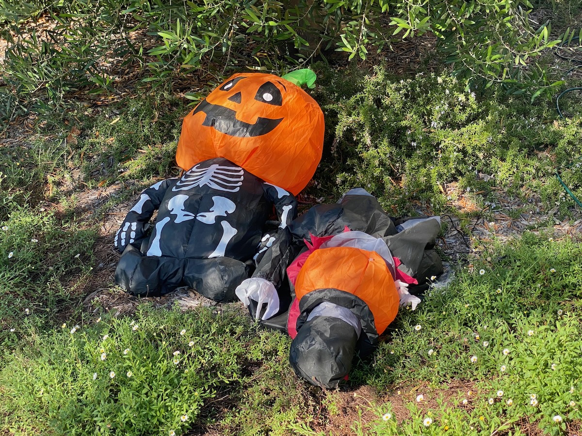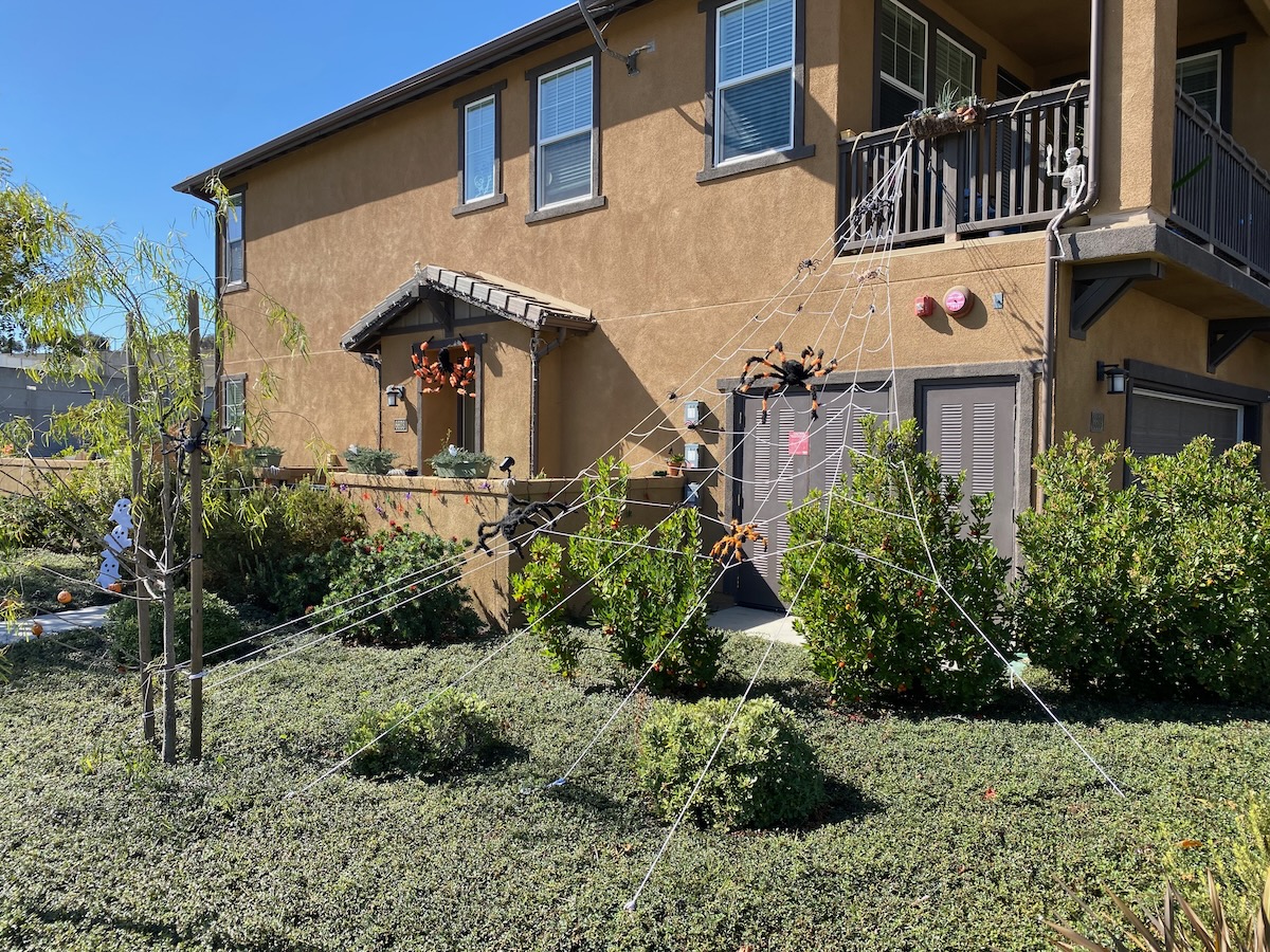 I came upon several giant fake spider webs. The second one below was more disturbing, because there was no sign of the spider. Where did it go?