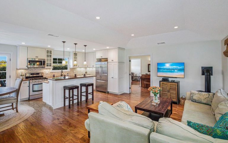 If you know that everyone in your household is going to end up being in the same room all of the time anyway, you might like the three-bedroom 2203 Hudson Drive (↓$100K to $1.695M) on the Mesa; the kitchen, dining room, and living room are all in one small space. When you need to get out, the Mesa Lane Beach stairs are a short walk away.