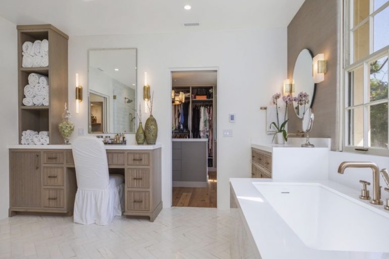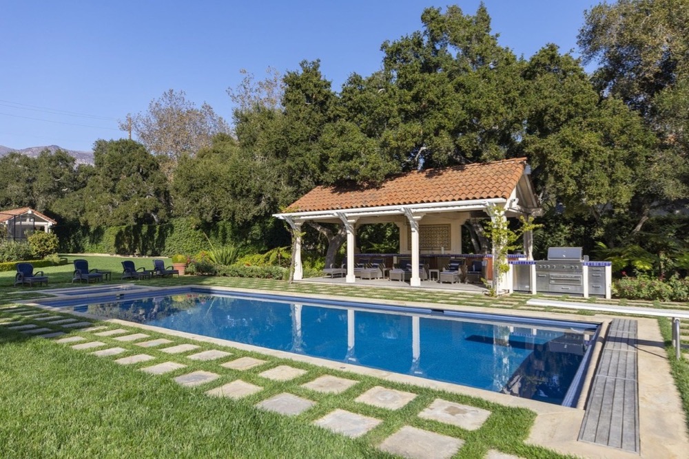 I stopped by 1530 Mimosa Lane in Montecito’s Hedgerow at yesterday’s broker’s open house, and I loved it. Built in 1924, the house has the charm of an older property, but it has been expertly updated. The 1.75-acre lot is huge for the hedgerow, and there’s a well, which has to come in handy, given the expansive lawn.