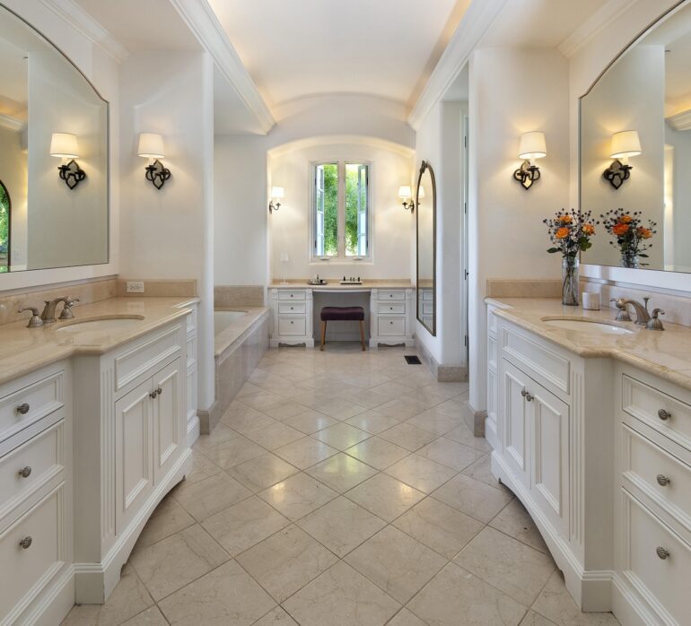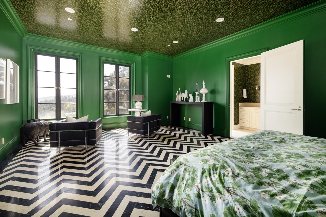 Behind the staid Neoclassical facade of 1140 E. Mountain Drive ($24.995 million), built in 2002 near the top of a private lane, are interiors that tiptoe toward glamour in the common areas and then rush headlong into it as you venture deeper—super gloss paint in vibrant colors, wallpaper galore, and so on. (Even the pool got done.) I haven’t seen it in person, so I can’t say to what degree it all coheres. The inspiration for the price is presumably 1196 E. Mountain Drive ($30 million) nearby. The latter property is a bit larger, with two guest houses (vs. none) and more usable outdoor space; more important, it has been recently renovated in a style that’s less distinctive, but with broader appeal. The question comes down to whether all this pizzazz aligns with your taste—if so, you’re in luck, because serving looks like this doesn’t come cheap.