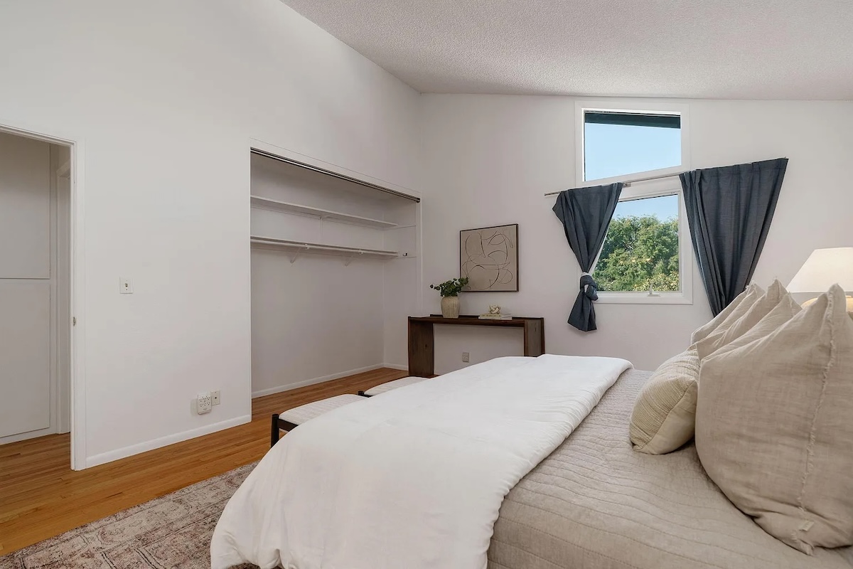 ••• 1749 La Coronilla Drive ($2.799 million): 1976 house in need of updating and at least one set of closet doors (below). Plus: Avant-garde window treatments!