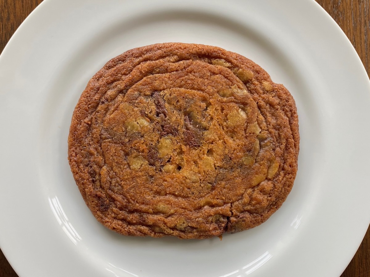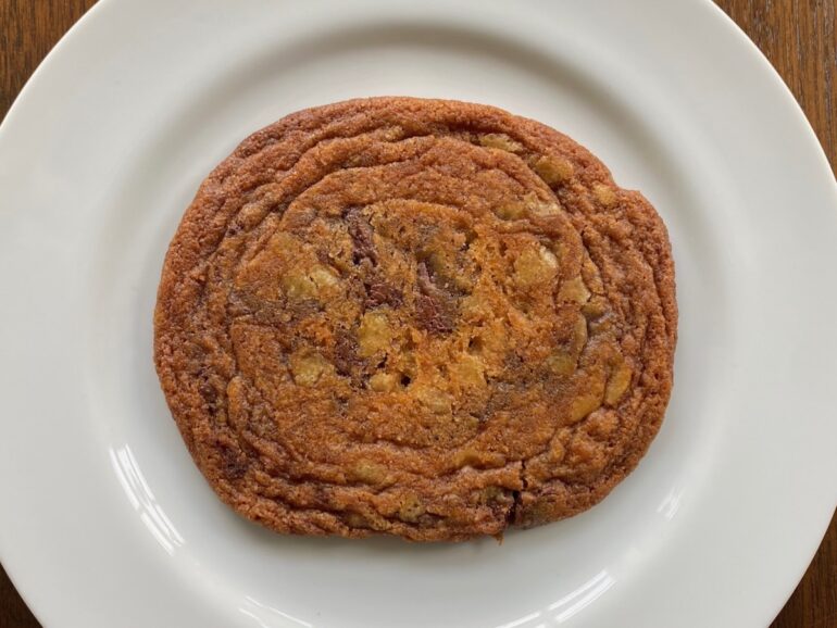 ••• Elsewhere in the Montecito Country Mart, Merci has introduced table service, something that has been in the works for a while. Speaking of Merci, like any sensible person, I love its chocolate chip cookies, and I keep the dough in the freezer for cookie-related emergencies. But I wondered what would happen if the cookie was flipped, so that both sides end up crisped. The result isn’t as pretty, but the texture is amazing—chewier, verging on candy. (Bake the frozen dough on parchment at 350 degrees for 10 minutes; bang the pan against the oven door to make the dough fall a bit; bake 10 more minutes; flip and bake 2 minutes; let cool for 5 minutes. The flipping can be tricky but you’ll end up with something delicious even if you bungle it. And I’m sure this works for the refrigerated dough, too—just bake for less time.)